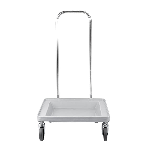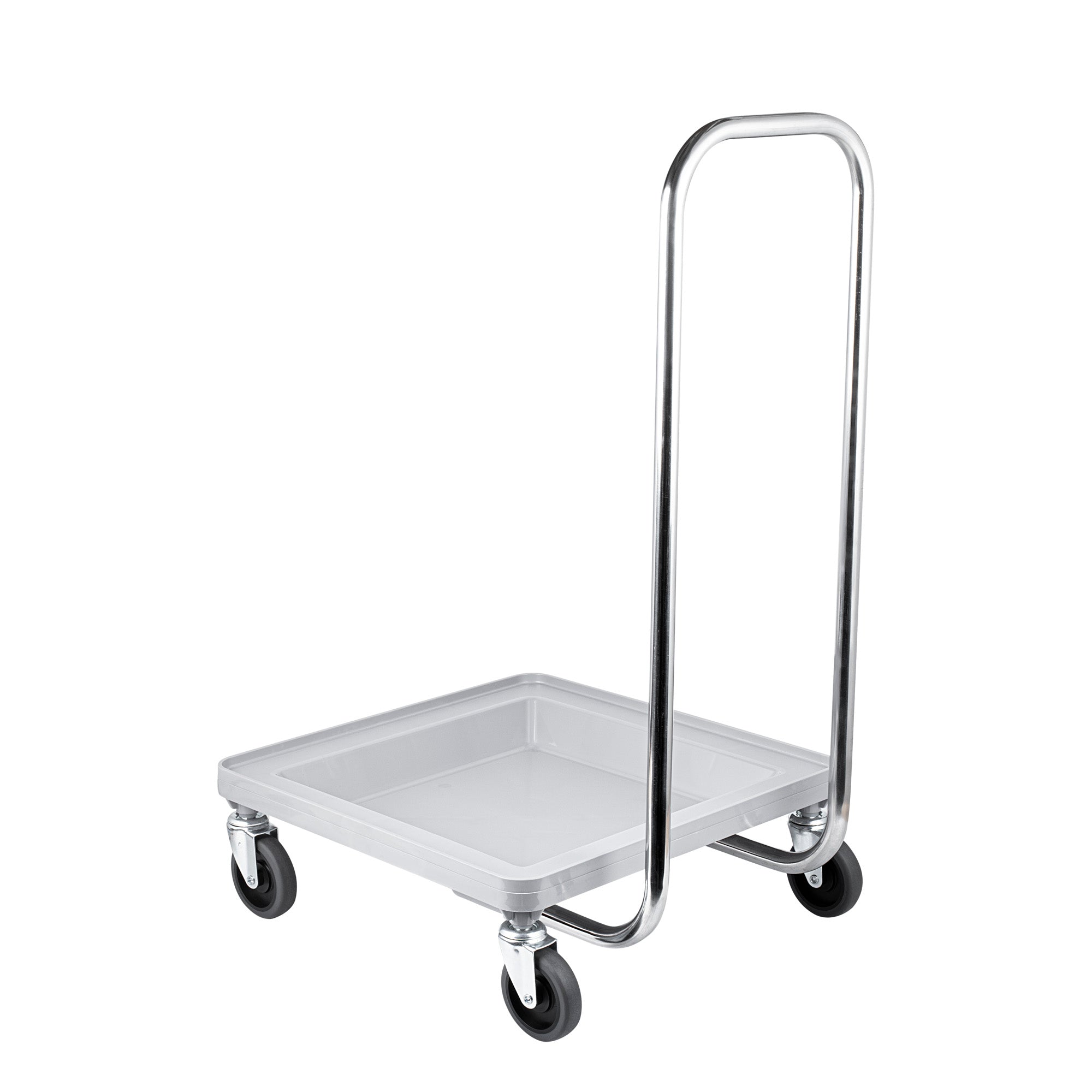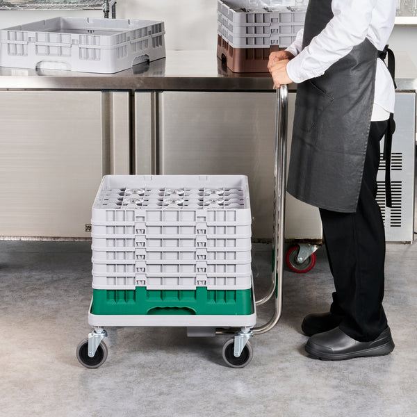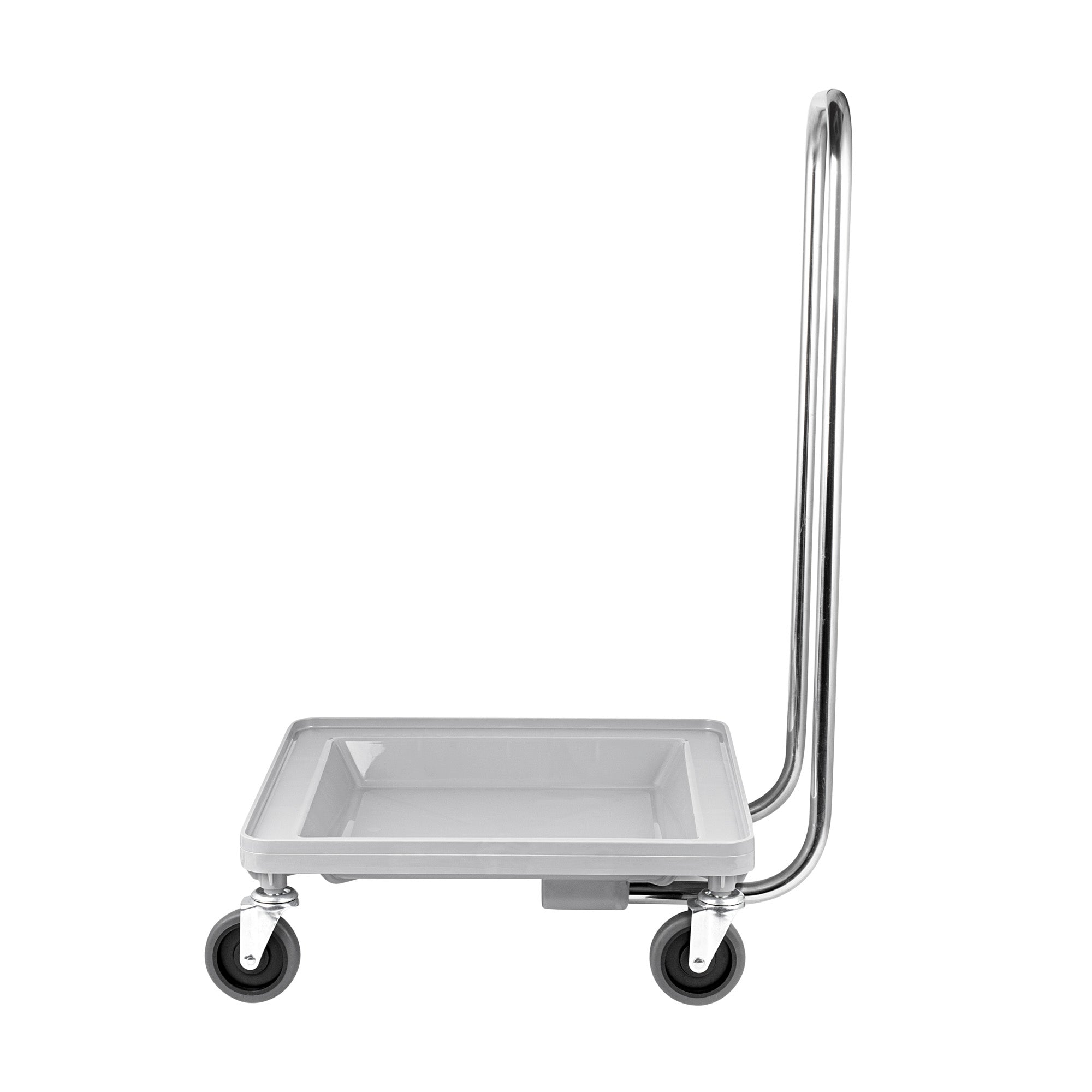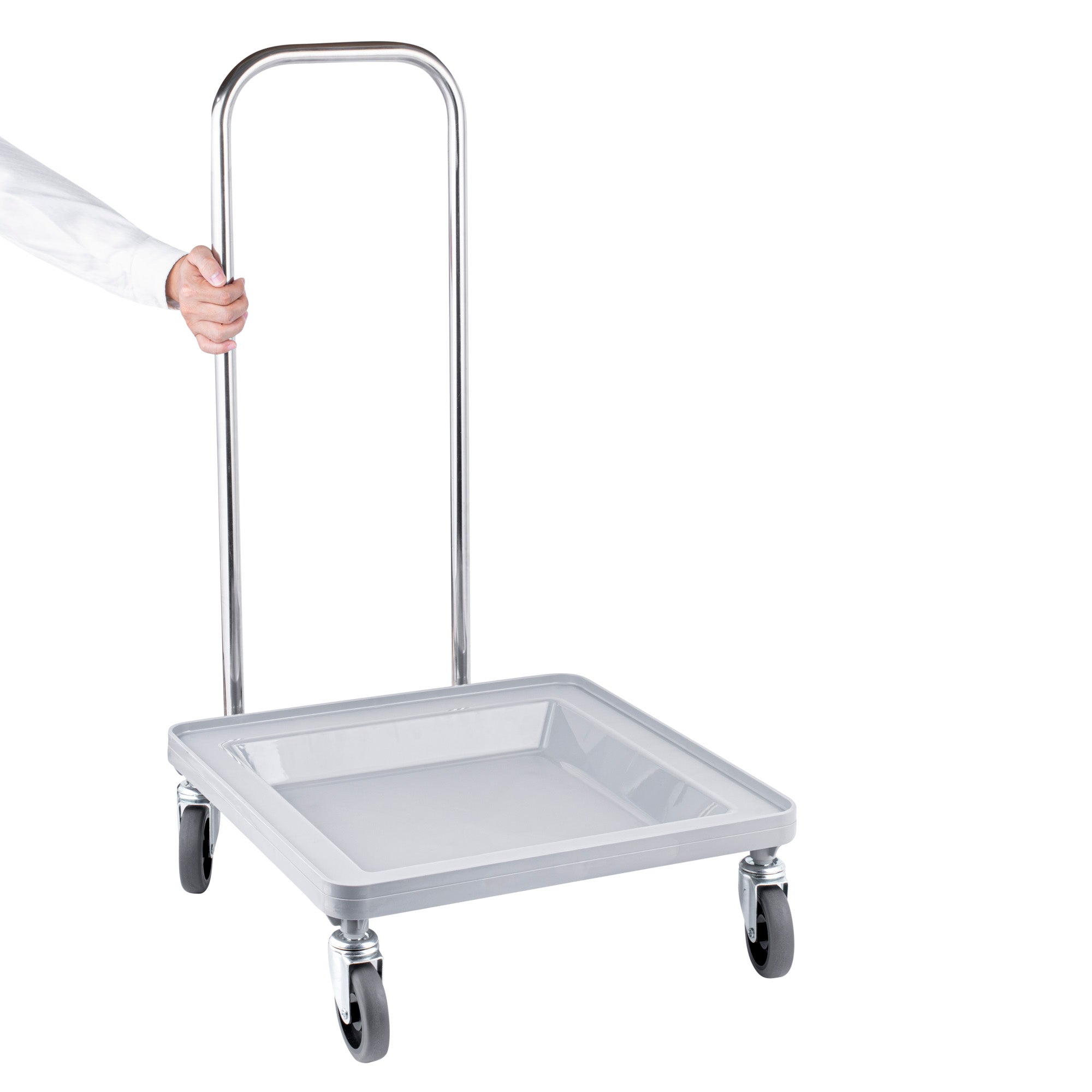Revolutionize your kitchen operations with our Bundle: Clean Tek Professional 1 Gray Dish Rack Dolly and 1 Dolly Handle, designed for effortless dish transportation and storage. This dynamic duo includes a sturdy gray plastic dolly and a convenient handle, working in tandem to streamline your kitchen workflow. The dolly features four 4-inch casters, enabling smooth mobility across various surfaces, from kitchen floors to storage areas. Its indented surface securely holds compatible glass racks, averting accidents and ensuring secure transport. Constructed from premium plastic, this rack dolly offers long-lasting durability to withstand daily use in busy kitchen settings. The included dolly handle enhances maneuverability, allowing staff to easily guide the loaded dolly through tight spaces and around corners. When not in use, the compact design of the dolly, measuring 20.87 inches in length by 20.87 inches in width by 7.09 inches in height, allows for convenient storage in small spaces. Each order includes 1 gray dish rack dolly and 1 dolly handle.