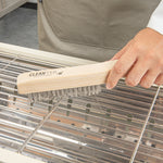 - Stainless steel bristles efficiently remove baked-on grease and messes