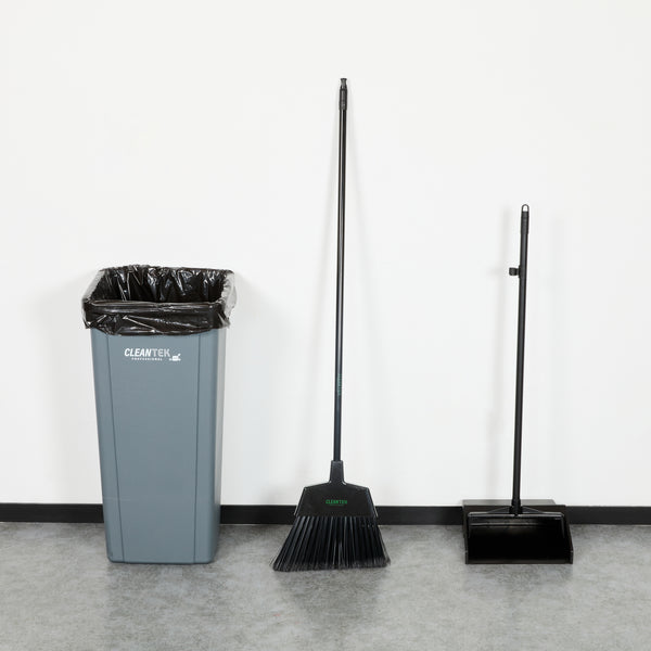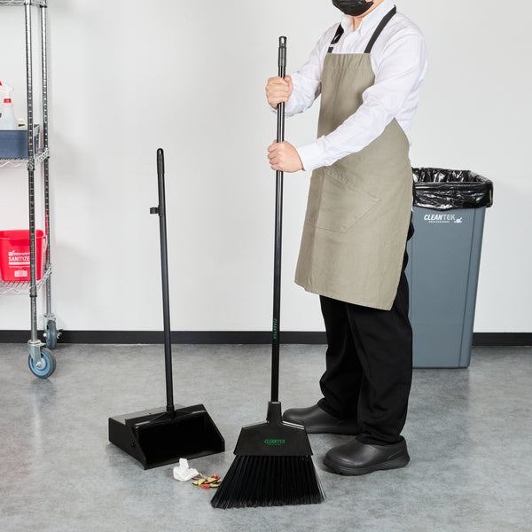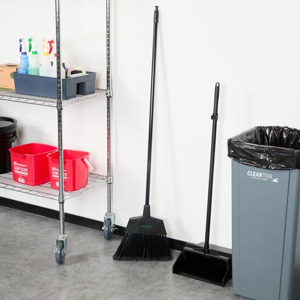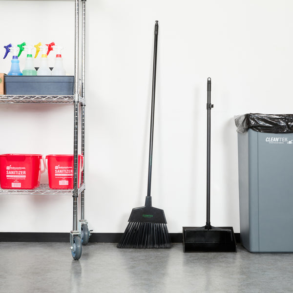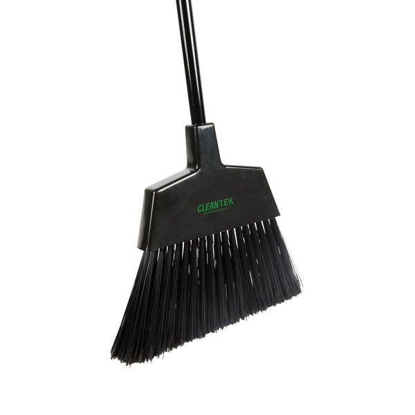 Uphold cleanliness standards with our Clean Tek Professional 11 3/4-inch Black Plastic Angled Broom. Designed with an angled broom head, this sweeping broom excels at reaching around corners and tackling tight, hard-to-reach areas, ensuring no spot is left uncleaned. Equipped with flagged bristles, this industrial broom effectively captures fine dust and debris, providing a thorough clean on both smooth and textured surfaces. Featuring a 48-inch metal handle, this commercial broom offers a comfortable grip, allowing for effective control and ease of use during sweeping tasks. The plastic block of this angled broom is designed for durability and stability, securely holding the bristles and enhancing the broom's overall performance. Ideal for use in various environments, this push broom is versatile and reliable. Measuring 59.06 inches in length by 11.81 inches in width by 1.38 inches in height, this dust broom is designed to meet the rigorous demands of the foodservice industry. Sold in a 1 count box.