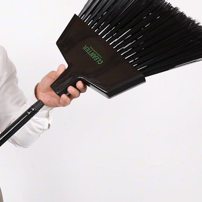 11 3/4" BLACK PLASTIC ANGLED BROOM - WITH FLAGGED BRISTLES