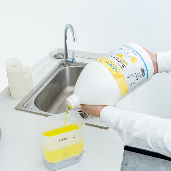 Streamline kitchen efficiency with powerful dishwashing solutions. Clean Tek Professional Dishwashing Liquid harnesses an ultra-concentrated formula that drastically reduces soap usage costs, making it an ideal choice for high-volume kitchens. With OXY power, this dish soap swiftly cuts through tough grease and stubborn residues, ensuring dishes are left spotless and hygienic. Its quick rinsing formula speeds up kitchen cleanup, allowing staff to focus on delivering exceptional service, and the fresh lemon scent enhances the overall dining experience. The large 128.5 fluid ounces size is perfect for institutional kitchens and catering services, minimizing restocking frequency and maximizing productivity. Experience the benefits of a reliable cleaning agent in your foodservice operation. Each order includes 4 Clean Tek Professional Dishwashing Liquid.