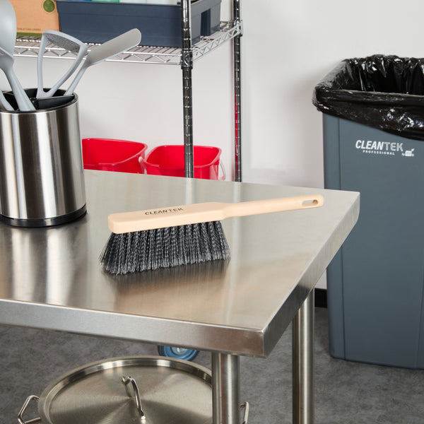Maintain clean surfaces with our Clean Tek Professional 13 3/4-inch Beige Plastic Counter Brush. This cleaning brush features flagged bristles that effectively capture fine dust and debris, ensuring a thorough and efficient clean. The plastic brush block of this scrubber brush is sturdy and resilient, providing a secure base for the bristles and ensuring long-lasting performance. Ergonomically designed, the handle of this plastic brush offers a comfortable grip, reducing hand strain and allowing for precise control during use. The contrast between the beige body and black bristles of this dust brush adds a striking visual appeal. Measuring 13.78 inches in length by 1.58 inches in width by 3.15 inches in height, this cleaning tool fits comfortably in hand and is perfect for detailed cleaning tasks. Sold in a 1 count box.