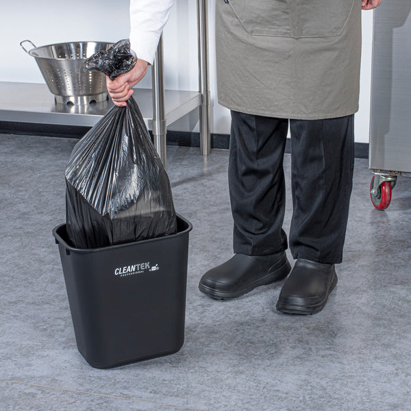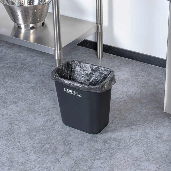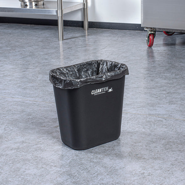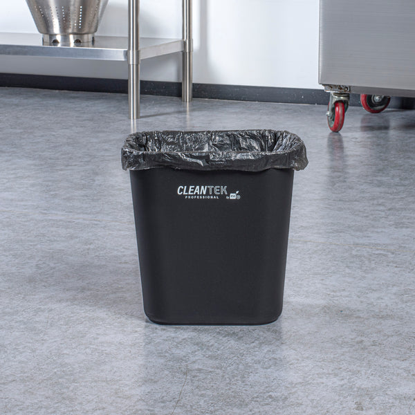 Maximize space efficiency with this sleek waste management solution. The Clean Tek Professional Space-Saving Black Plastic Rectangular Trash Can, measuring 11.7 inches by 7.9 inches by 12 inches, fits seamlessly into tight kitchen corners, optimizing your workspace. Its rectangle design is engineered to enhance space utilization, making it an ideal rectangular trash can for busy foodservice environments. Constructed from premium plastic, this heavy-duty trash bin is built to withstand the rigors of daily use, ensuring long-lasting performance. The elegant black finish not only provides a professional aesthetic but also effectively conceals dirt, maintaining a tidy appearance that complements any décor. With a lightweight and portable design, this kitchen waste bin is easy to move and reposition, facilitating effortless cleaning routines. Each order includes 1 Clean Tek Professional Space-Saving Black Plastic Rectangular Trash Can.
