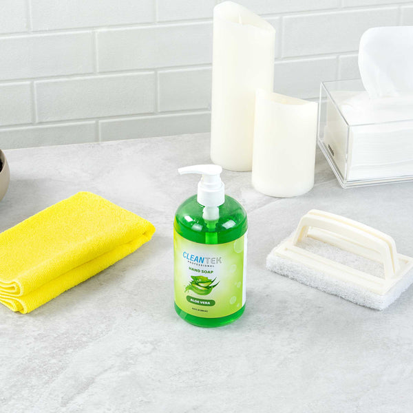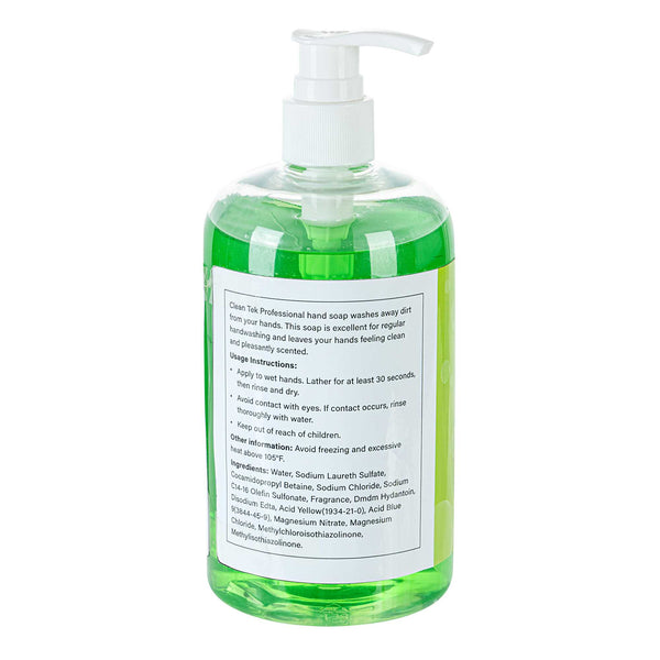Ensure pristine hand hygiene with gentle, effective cleansing. The Clean Tek Professional Liquid Hand Soap, featuring a refreshing citrus burst scent, is designed to meet the rigorous hygiene standards of foodservice settings. This hand wash soothes and hydrates hands, preventing dryness even with frequent washing. With a substantial 16.9-fluid-ounce capacity per bottle, this soap reduces refill frequency, making it ideal for high-traffic kitchens. Its easy-to-use formula ensures thorough cleaning, crucial for busy culinary settings, while its soothing properties make it a top choice for chefs and staff. Packaged in a convenient 1-count box and measuring 3 inches in width by 6.7 inches in height, it seamlessly fits into any workspace. Each order includes 1 Clean Tek Professional Aloe Citrus Liquid Hand Soap.