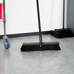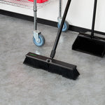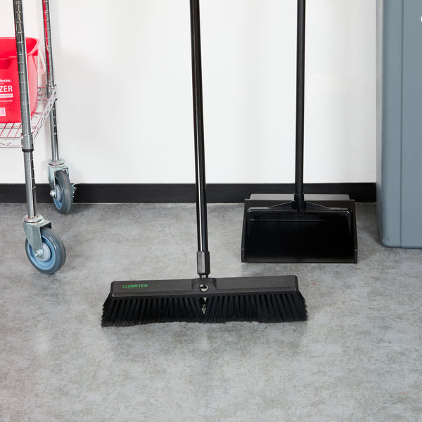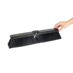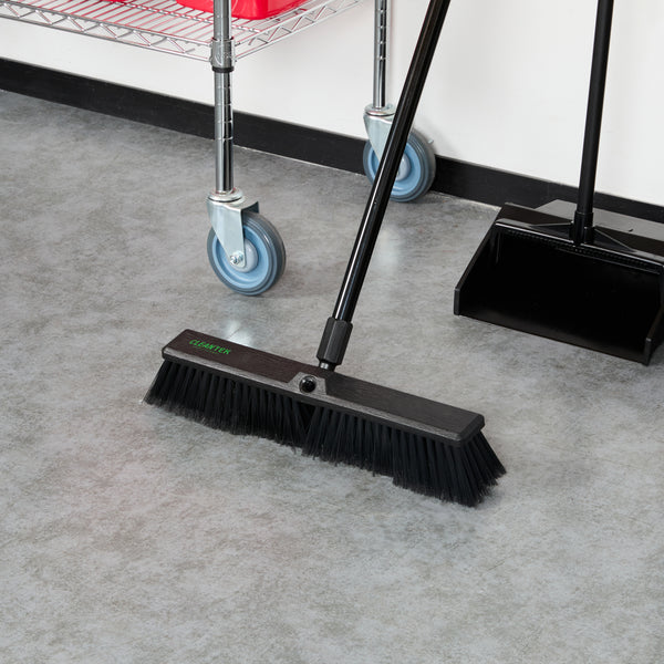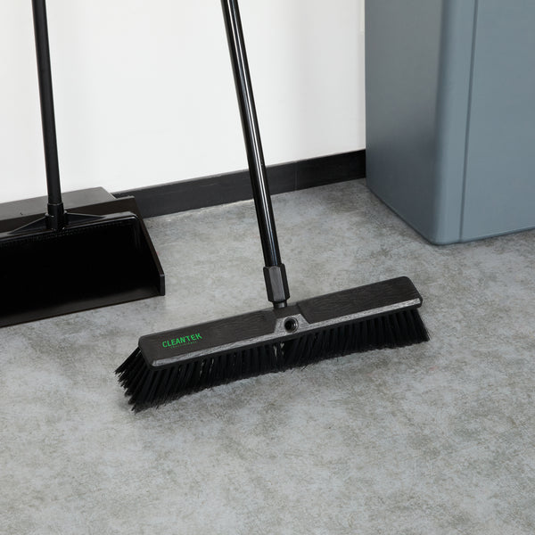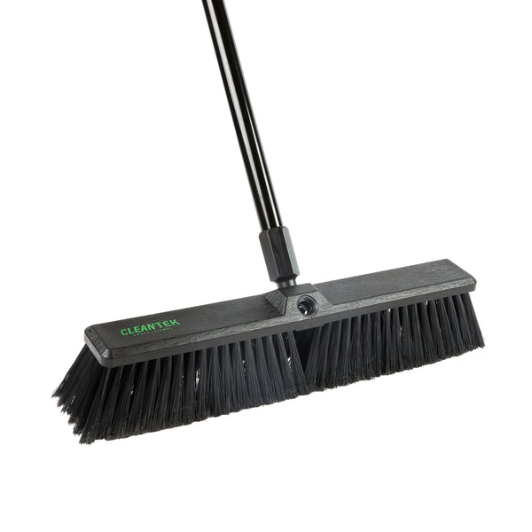 Effortlessly maintain cleanliness in your establishment with our Clean Tek Professional 17 1/4-inch Black Plastic Push Broom Head. Equipped with fine flagged bristles, this push broom head effectively captures and sweeps up dust and debris from various surfaces, ensuring a thorough and efficient cleaning. Pair this heavy-duty push broom head with compatible handle (SKU: RWT1877B) for a robust cleaning performance. The durable bristles of this dust broom head provide long-lasting performance on both indoor and outdoor surfaces, making it an ideal heavy-duty push broom for any setting. With a plastic block, this broom head features two handle attachments, allowing you to swap sides if the bristles wear unevenly, ensuring prolonged usability. This wide broom head measures 17.13 inches in length by 2.36 inches in width by 3.35 inches in height, providing ample coverage for efficient sweeping. Sold in a 1 count box. Handle is available and sold separately.