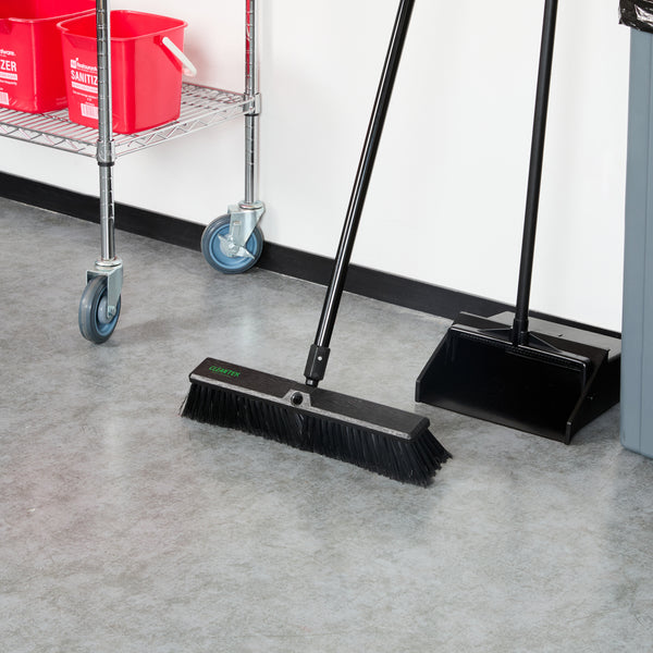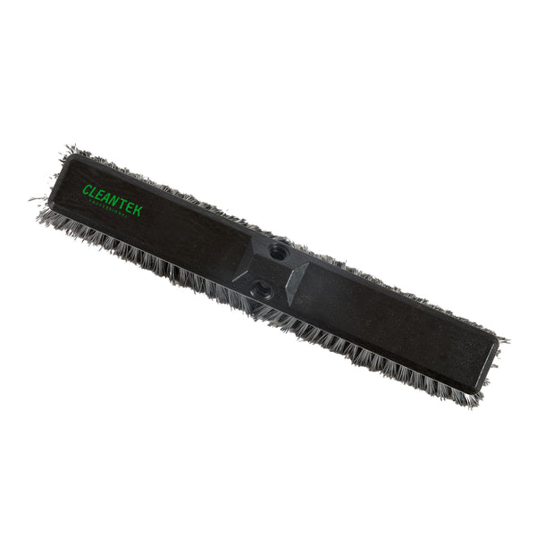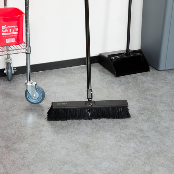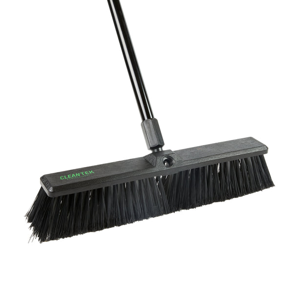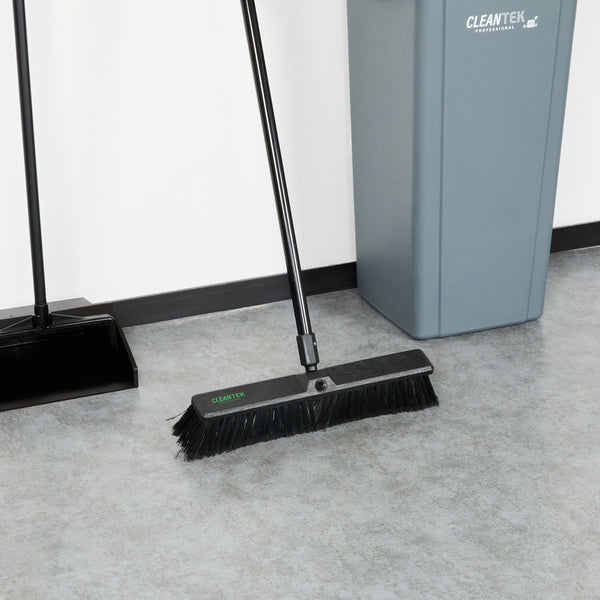 Enhance your cleaning efficiency with our Clean Tek Professional 17 1/4-inch Black Plastic Push Broom Head. Equipped with medium flagged bristles, this broom head provides a versatile cleaning performance, effectively capturing dust and debris from various surfaces. Pair this heavy-duty push broom head with a matching handle (SKU: RWT1877B) for a robust cleaning performance. This push broom head is designed with durable plastic bristles, ensuring long-lasting use on both indoor and outdoor surfaces. Featuring a plastic block, this wide broom head includes two handle attachments, allowing you to swap handle sides if the bristles wear unevenly. The ergonomic design of this dust broom head reduces hand fatigue during prolonged use, making it ideal for extensive cleaning tasks. With dimensions of 17.13 inches in length by 2.36 inches in width by 3.35 inches in height, this plastic broom head offers a broad cleaning path for efficient sweeping. Sold in a 1 count box. Handle is available and sold separately.