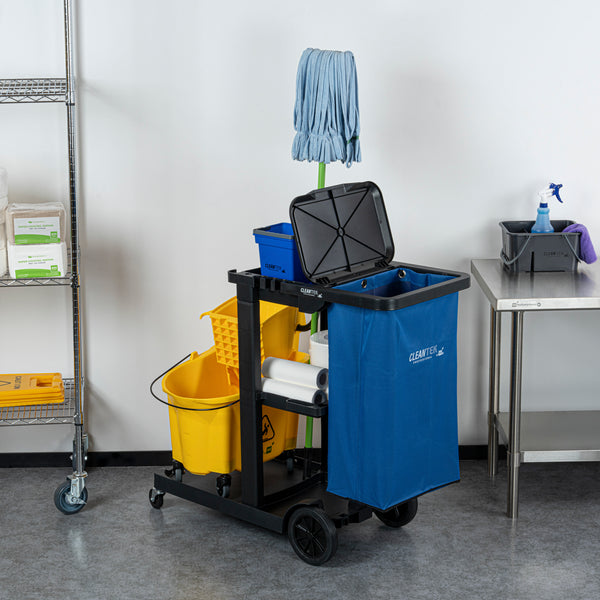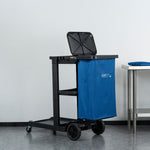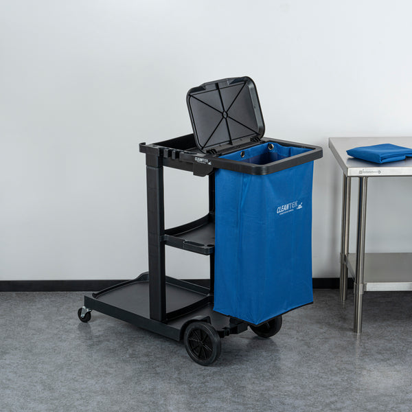 Streamline your waste management with our Clean Tek Professional 18-gallon Blue Plastic Bag. This laundry bag is compatible with our collection of compatible Clean Tek Professional janitor carts, ensuring a perfect fit for efficient waste collection. Featuring metal-reinforced hanging holes, this plastic bag offers strong durability and a secure fit on your janitorial cart, making it easy to handle heavy loads. This janitor cart bag is easy to install and remove, simplifying the process of changing liners and maintaining your cart. With a blue finish, this large plastic bag supports color-coded waste segregation, making it easy to organize and identify different types of waste. Measuring 14.96 inches in length by 10.63 inches in width by 27.17 inches in height, this 18-gallon heavy-duty plastic bag makes it easy to manage large quantities of waste or supplies efficiently. Sold in a 1 count box. Janitor carts are available and sold separately.