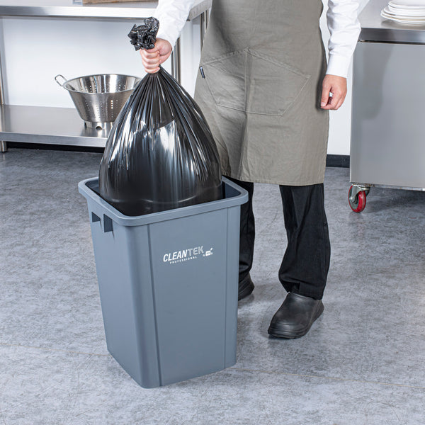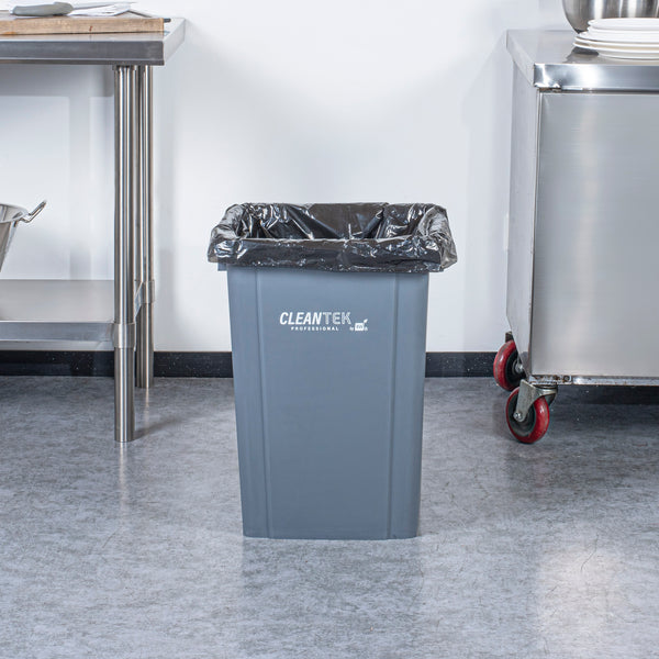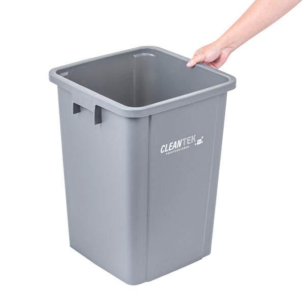 Optimize your foodservice operations with our Clean Tek Professional 19-gallon Square Gray Plastic Trash Can. Made from premium HDPE plastic, this durable trash bin withstands heavy-duty use in any kitchen environment. Featuring a square design, this trash can fits neatly into tight corners, maximizing space efficiency. With an impressive 19-gallon capacity, this garbage bin provides ample space for high-volume waste disposal. Pair this versatile garbage can with a compatible lid (SKU: RWT2018GR) to securely enclose contents, preventing spills and containing odors. The classic gray color of this outdoor trash can blends seamlessly with most decor, enhancing the aesthetic of any room. Measuring 15.95 inches in length by 16.06 inches in width by 21.26 inches in height, this plastic bin can hold up to 19 gallons and offers substantial capacity while maintaining a compact footprint. Sold in a 1 count box. Lid is available and sold separately.