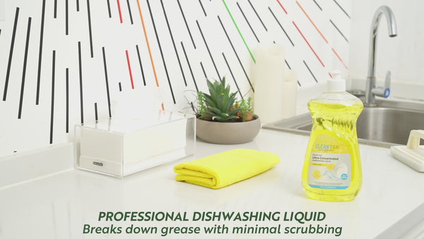 Boost dishwashing efficiency with ultra-concentrated cleaning power. The Clean Tek Professional Dishwashing Liquid harnesses an ultra-concentrated formula that significantly reduces soap usage, offering substantial cost savings for commercial kitchens. Enhanced by OXY Power Technology, this lemon dishwashing liquid effectively cuts through grease and tough residues, ensuring your dishware sparkles effortlessly. Its quick-rinsing formula expedites the dishwashing process, allowing foodservice professionals to maintain a rapid turnover in high-volume settings. With a compact design measuring 3.1 inches in length and 2.2 inches in width, each 20.3-fluid-ounce bottle is convenient to store and handle. Elevate the cleanliness and aroma of your kitchen with the pleasant lemon scent, and experience the reliability of professional-grade quality tailored for demanding environments. Each order includes 1 Clean Tek Professional Dishwashing Liquid.