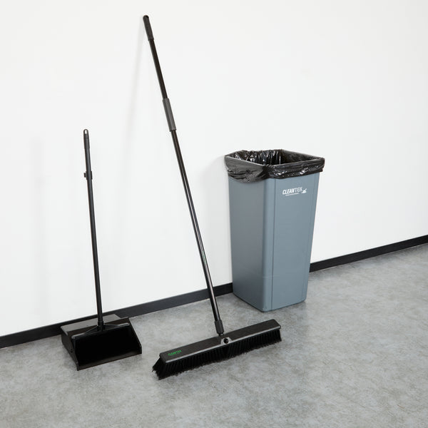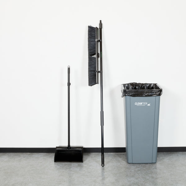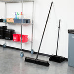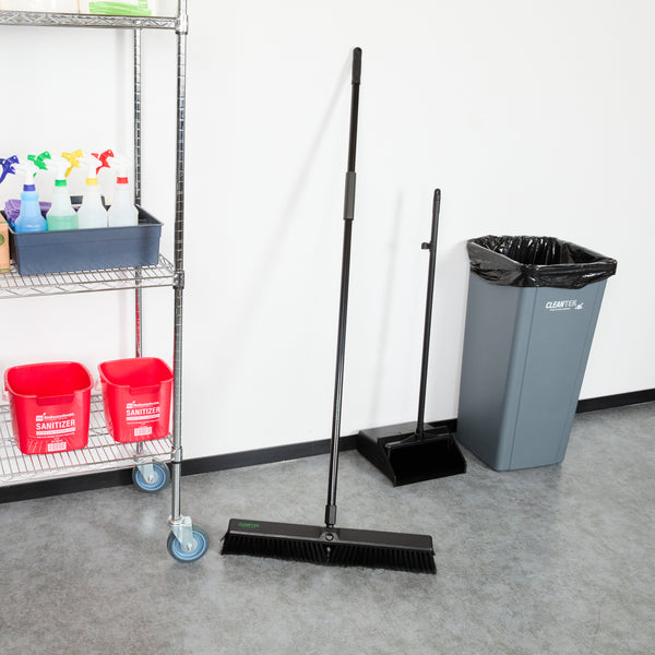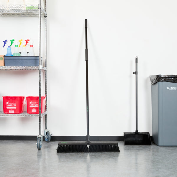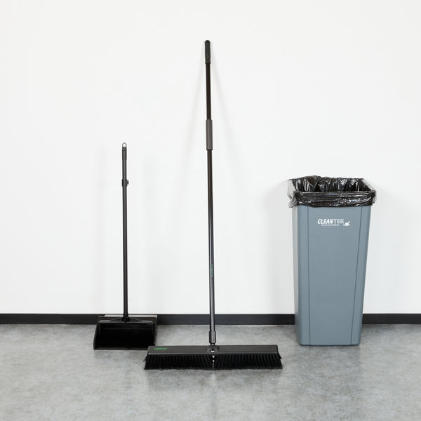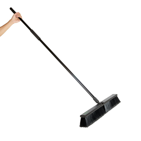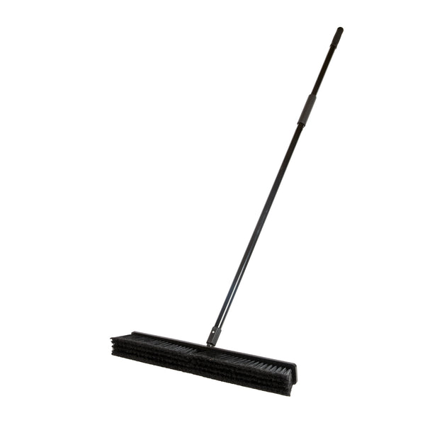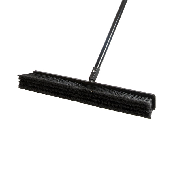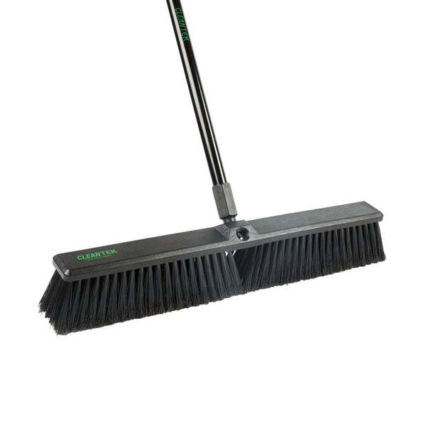 Streamline your cleaning process with our Clean Tek Professional 23 1/2-inch Black Plastic Push Broom. Equipped with fine flagged bristles, this heavy-duty push broom effectively captures and sweeps up dust and debris from a variety of surfaces, providing thorough and efficient cleaning. The plastic bristles on this sweeper broom are durable, ensuring long-lasting performance on both indoor and outdoor surfaces. Featuring a plastic block with two handle attachments, this dust broom allows you to swap handle sides if you find the bristles wearing unevenly. With a 59-inch steel handle, this industrial broom offers a long reach and maneuverability, making it easy to clean large or hard-to-reach areas. Designed for comfort, the ergonomic handle of this broomstick reduces hand fatigue during prolonged use. Measuring 62.21 inches in length by 23.62 inches in width by 2.36 inches in height, this push broom is ideal for any commercial or industrial cleaning task. Sold in a 1 count box.