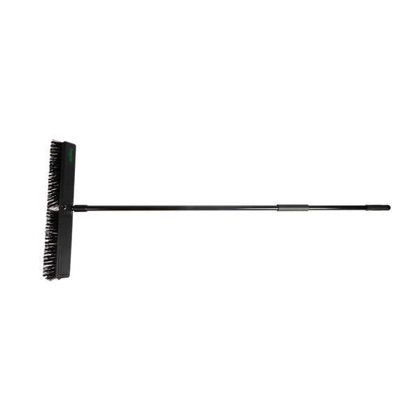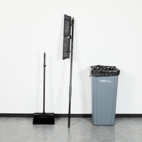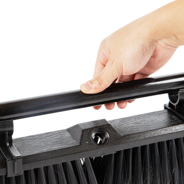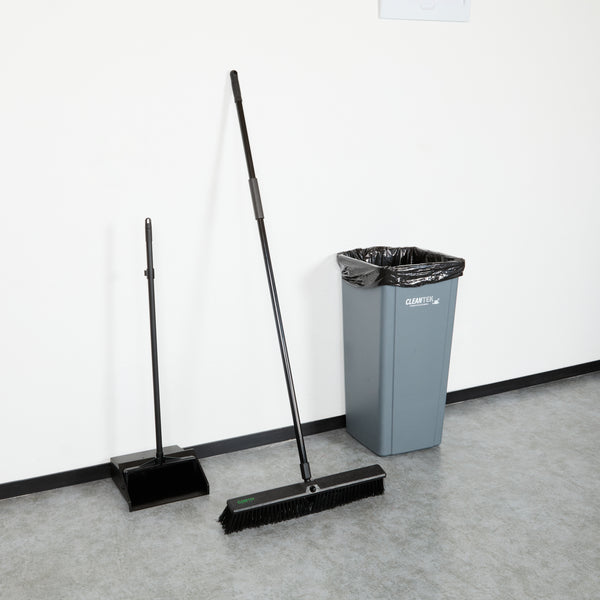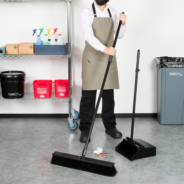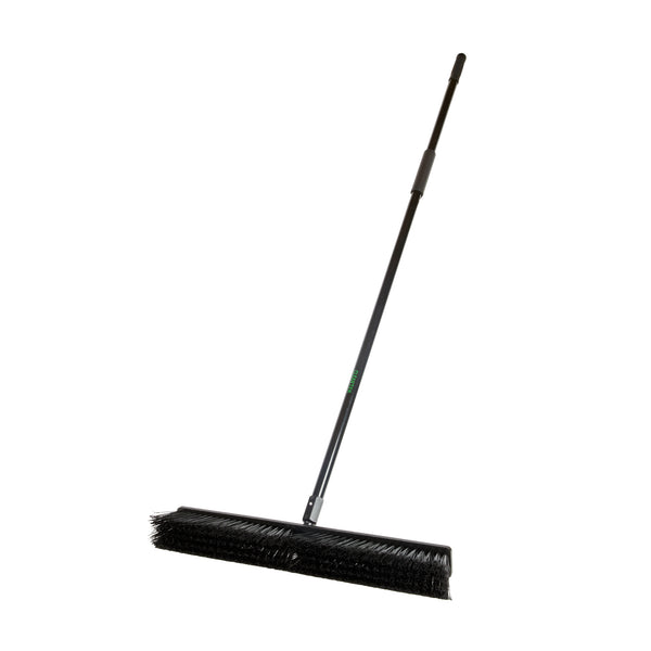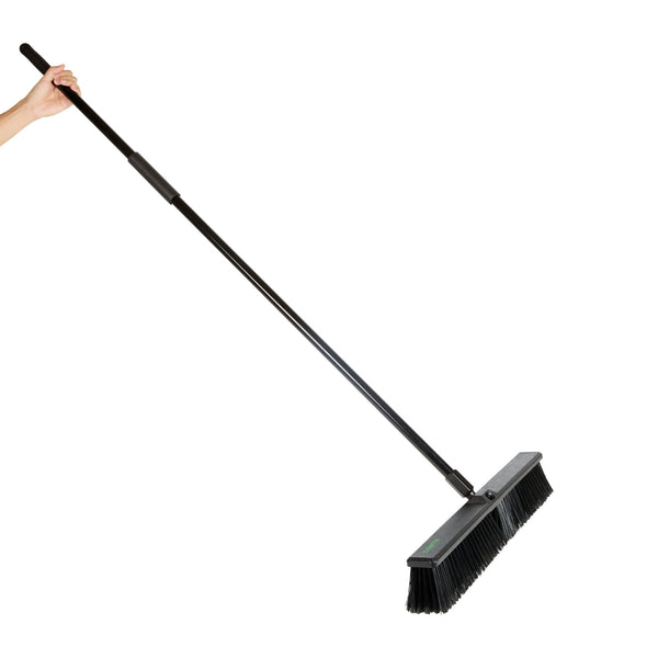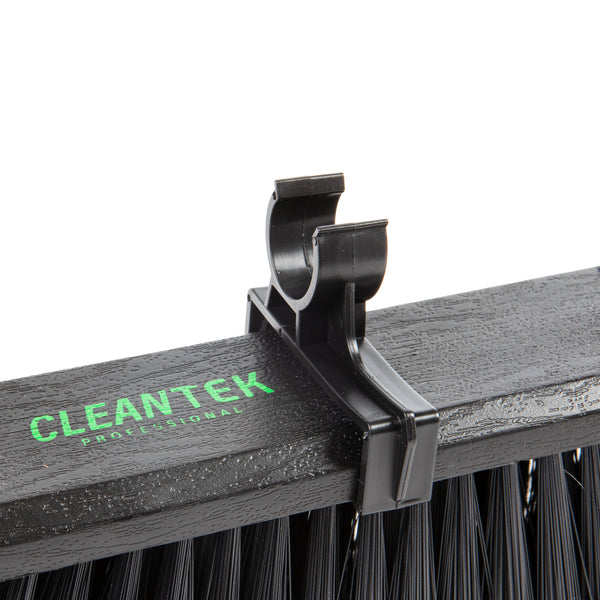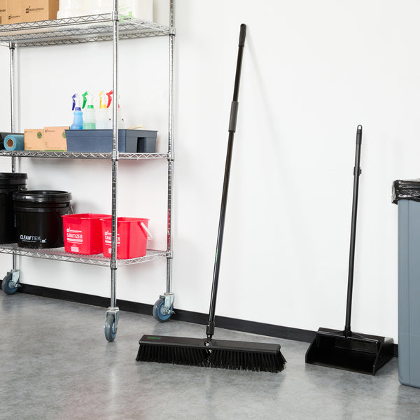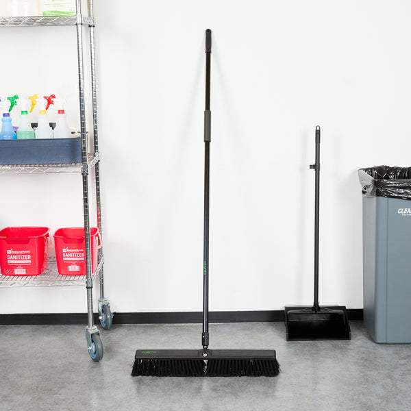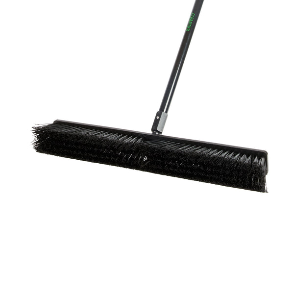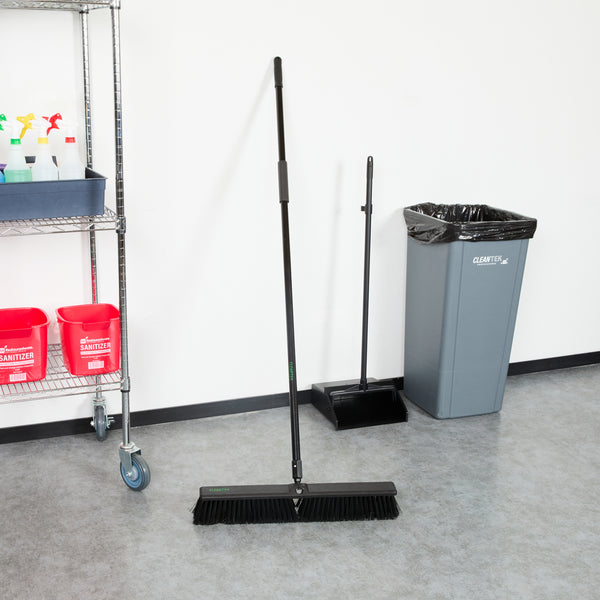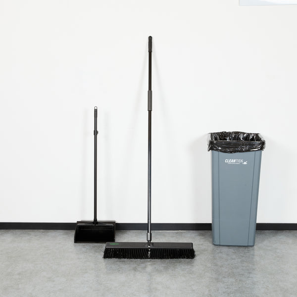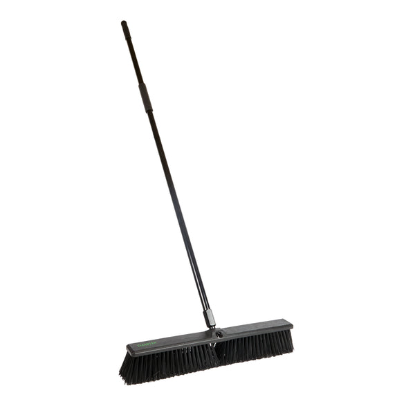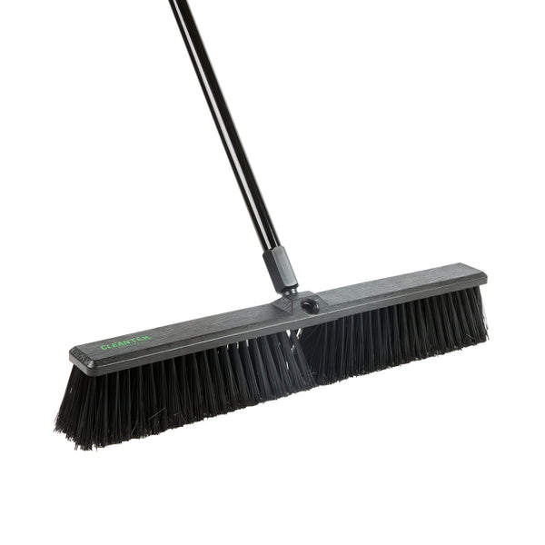 Experience unparalleled cleaning efficiency with our Clean Tek Professional 23 1/2-inch Black Plastic Push Broom. Equipped with heavy unflagged bristles, this robust push broom effortlessly tackles large debris and rough surfaces. The durable plastic bristles on this dust broom ensure long-lasting performance on both indoor and outdoor surfaces. Featuring a plastic block with two handle attachments, this heavy-duty broom allows you to swap sides for even bristle wear. The 59-inch steel handle of this sweeper broom offers a long reach and exceptional maneuverability, making it easy to clean expansive or hard-to-reach areas. Designed with an ergonomic handle, this broomstick reduces hand fatigue during prolonged use. With dimensions measuring 62.21 inches in length by 23.62 inches in width by 2.36 inches in height, this garage broom is perfect for extensive cleaning tasks. Sold in a 1 count box.