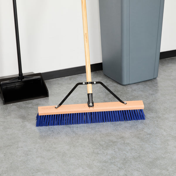 Enhance your cleaning arsenal with our Clean Tek Professional 24-inch Hardwood Contractor / Push Broom Head. Equipped with heavy flagged bristles, this broom head efficiently dislodges and sweeps larger debris from rough or uneven surfaces. Pair this push broom head with compatible handle (SKU: RWT1860B) and brace (SKU: RWT1861B) for a comprehensive cleaning experience. The bristles of this dust broom head ensure long-lasting performance. Featuring a non-absorbent wood block, this heavy-duty push broom head provides longevity and is ideal for consistent use. Measuring 23.62 inches in length by 2.48 inches in width by 3.86 inches in height, this wide broom head fits perfectly for various cleaning applications. Sold in a 1 count box. Handle and broom brace are available and sold separately.