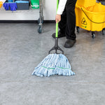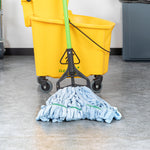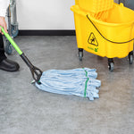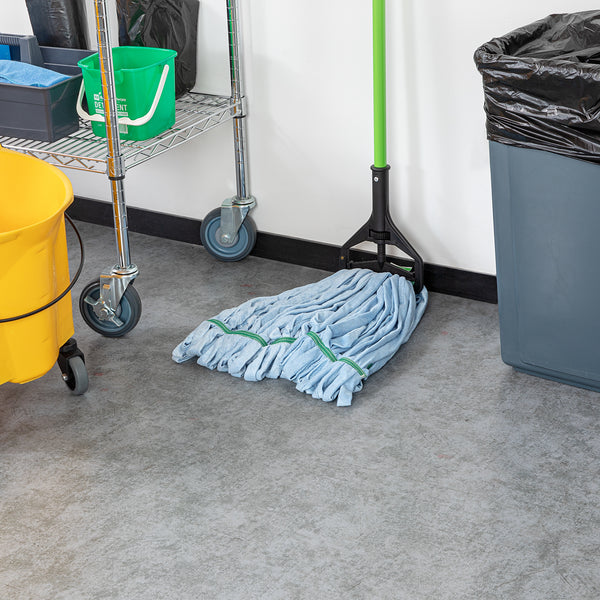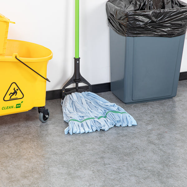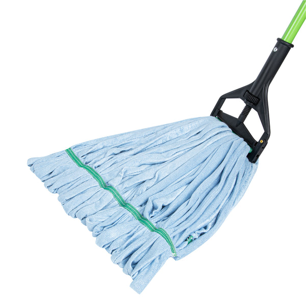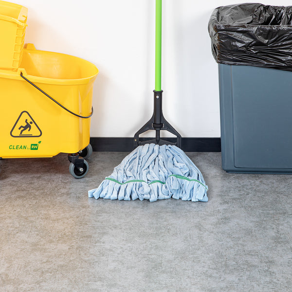 Keep your establishment spotless with our Clean Tek Professional 24-ounce Blue Microfiber Heavy Duty Wet Mop Head. This mop head features a 1.25-inch wide headband that ensures a secure fit with its compatible handle (SKU: RWT1788K, RWT1789G, and RWT1790G), making it perfect for heavy-duty cleaning tasks. The looped end of this wet mop head increases durability and prevents fraying, providing a longer lifespan and more effective cleaning. Crafted from premium microfiber, this commercial mop head boasts superior dirt pick up and absorbency, making it ideal for efficient cleaning. The mildew-resistant microfiber fabric of this washable mop head lints less, ensuring a cleaner environment. This mop head replacement is machine washable and can be easily cleaned for repeated use, ensuring long-lasting performance. This microfiber mop head ensures that your floors dry faster without streaking, improving your cleaning results. Measuring 21.65 inches in length by 5.98 inches in width by 1.97 inches in height, this blue mop head has a capacity of 24 ounces. Sold in a 1 count box. Handles are available and sold separately.