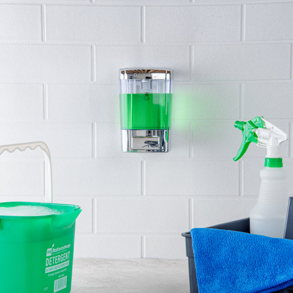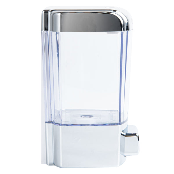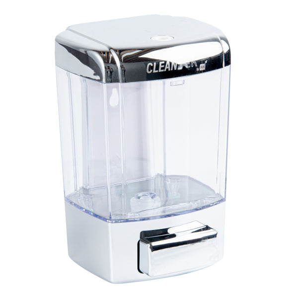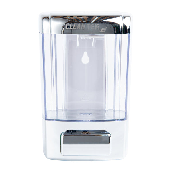 Avoid cross-contamination by replacing soap bars with Clean Tek Professional 24-ounce Clear Manual Soap Dispenser. Constructed from premium ABS plastic, this liquid soap dispenser withstands dust and water for longevity. The wall-mountable design of this hand-press soap dispenser saves space on the wash basin and allows your guests to identify and access it easily. With a translucent soap tank, this kitchen soap dispenser enables you to see the level of contents in the container. The wide top cover of this wall-mountable soap dispenser is detachable for easy refilling of gel or liquid soap. With the provided security key, the lid of this hand wash dispenser can be locked, making it ideal to be used in public places. This wall-mounted soap dispenser has a hand-press mechanism to dispense soap in a smooth way, enabling your guests to control drop volume and avoid product wastage. The dispensing valve of this refillable soap dispenser cuts off the soap after pumping to avoid the dripping of the product. With a 24-ounce capacity and measuring 4.25 inches in length by 4.25 inches in width by 6.5 inches in height, this dish soap dispenser can be used in restaurants, hotels, schools, and any public places. Shipped in a 1 count box.