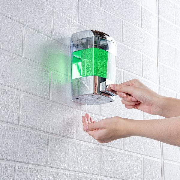 - Hand-press mechanism controls drop volume, avoiding soap wastage