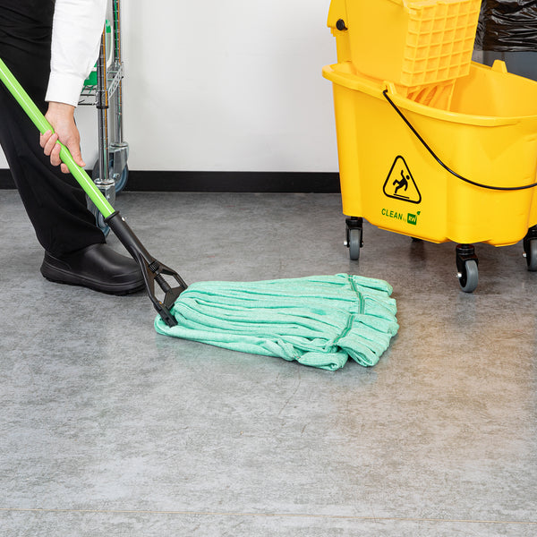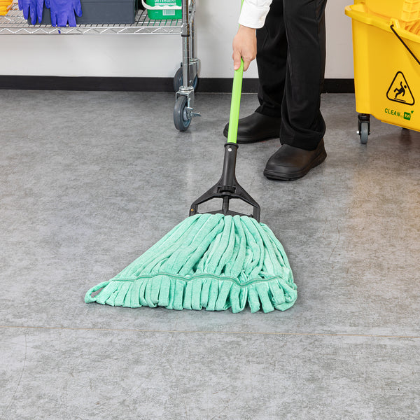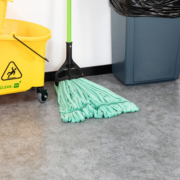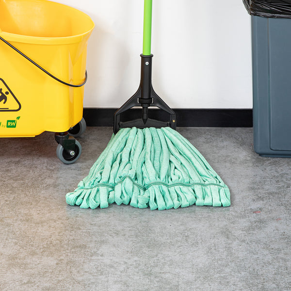 Elevate your cleaning routine with our Clean Tek Professional 24-ounce Green Microfiber Heavy Duty Wet Mop Head. This commercial mop head features a 1.25-inch wide headband and fits perfectly with a compatible handle (SKUs: RWT1788K, RWT1789G, and RWT1790G) for an efficient cleaning solution. The looped ends of this mop head prevent fraying and increase longevity, making it an excellent mop head replacement. Crafted from premium microfiber, this wet mop head boasts superior dirt pick up and absorbency, ensuring efficient cleaning every time. This microfiber mop head is mildew-resistant and lints less, providing a cleaner finish. Designed to be machine washable, this washable mop head is easy to clean for repeated use, offering long-lasting performance. This green mop head ensures your floors dry faster and without streaking, which is perfect for maintaining spotless surfaces. Measuring 21.65 inches in length by 5.98 inches in width by 1.97 inches in height, this heavy-duty mop head has a capacity of 24 ounces. Sold in a 1 count box. Handles are available and sold separately.