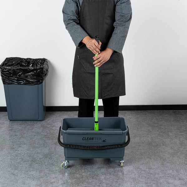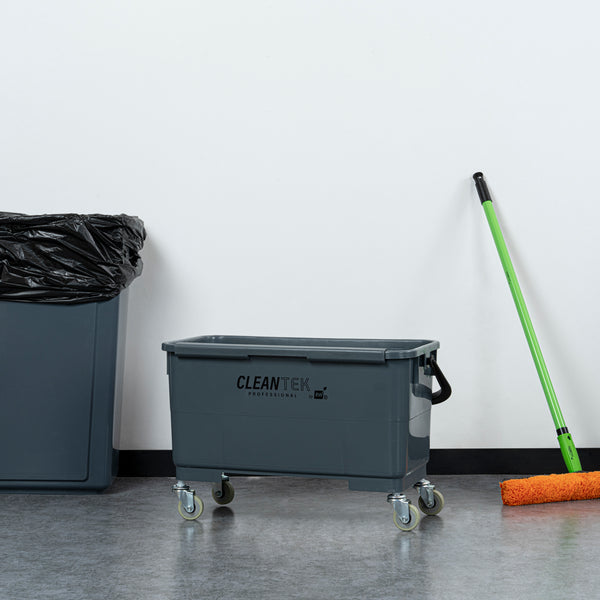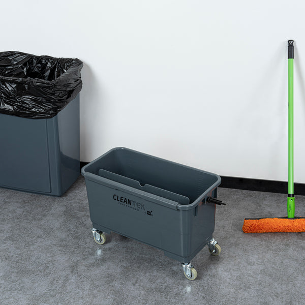 Streamline your cleaning tasks with our Clean Tek Professional 25-quart Gray Bucket. Equipped with 4 casters, this cleaning bucket glides effortlessly, ensuring fast transportation. Featuring a U-shaped sieve, this mop bucket efficiently drains and filters for quick separation of liquids and solids. Crafted from durable plastic, this plastic bucket with handle is built for long-lasting use and can withstand frequent handling and various settings. Designed with an ergonomically comfortable handle, this plastic bucket ensures easy gripping and maneuverability, making it convenient to carry and transport. Whether washing windows, cleaning cars, or finishing floors, this gray bucket is versatile enough to handle a variety of tasks around the home or workplace. With a capacity of 25 quarts, this plastic cleaning bucket measures 22.05 inches in length by 11.61 inches in width by 13.39 inches in height, providing ample space for all your cleaning needs. Sold in a 1 count box.