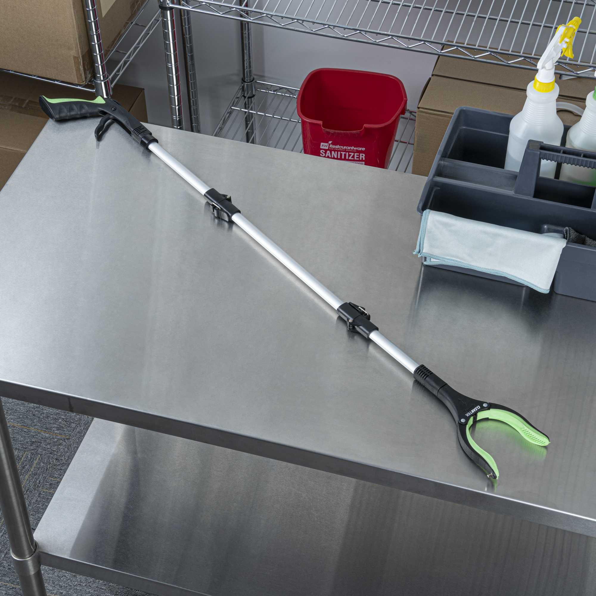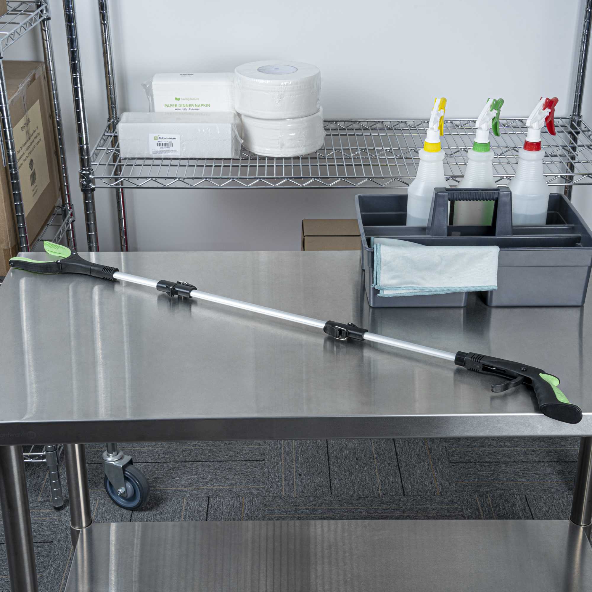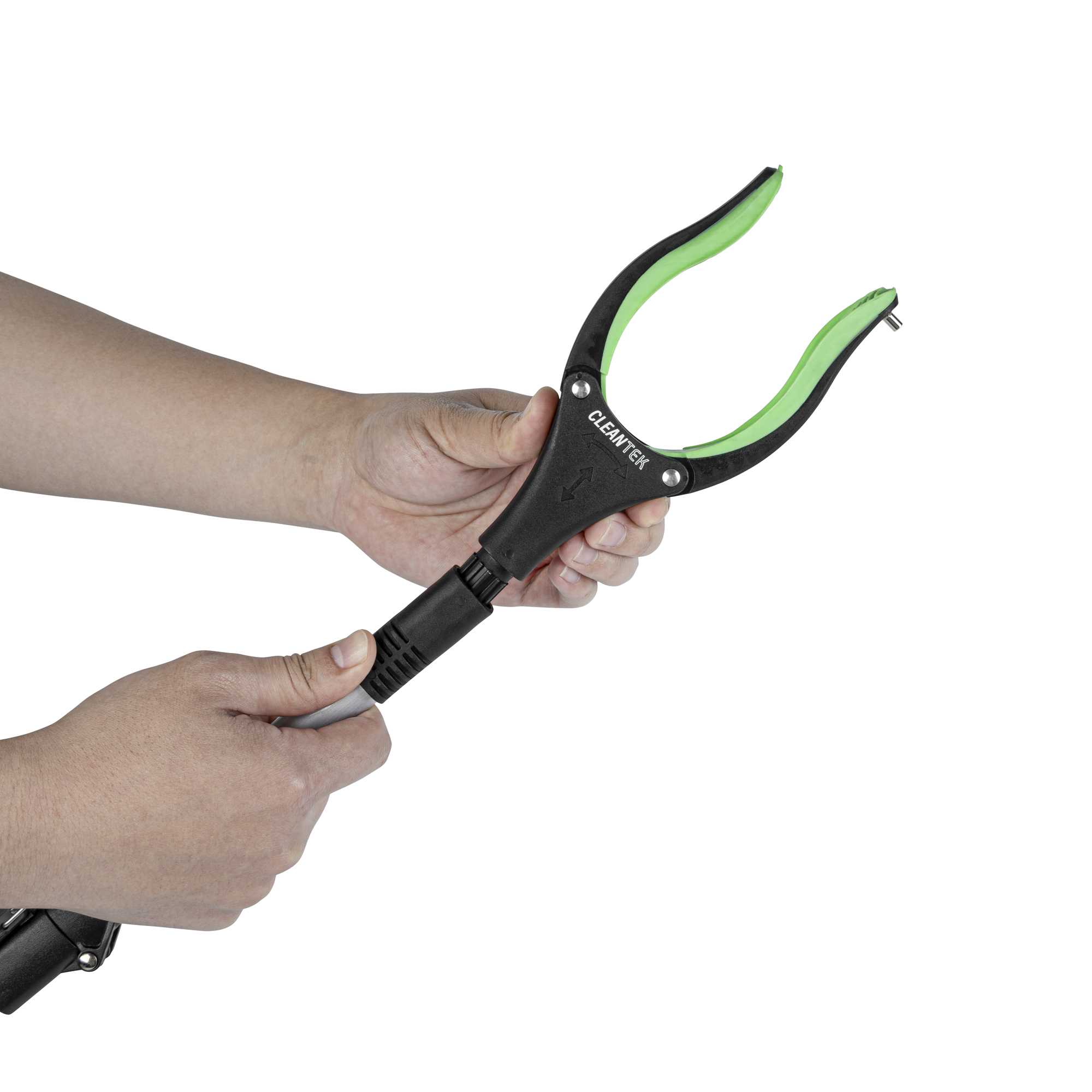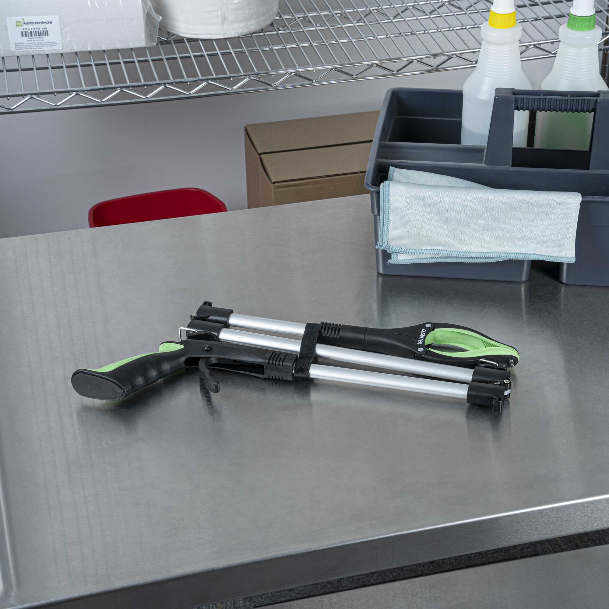 Maintain a clean and clutter-free space using our Clean Tek Professional 3-Fold Pick-Up Reaching Grabber Tool. This collapsible trash picker includes a 360° rotating head for precision when collecting trash in tight corners. Featuring a magnetic tip, this reacher grabber tool attracts metal waste like nails and cutlery. This garbage picker includes rubber-coated jaws to grasp slim or oddly shaped items without slipping. Designed with a 3-fold feature, this tool collapses to a highly compact form, ideal for janitorial kits or tight storage areas. Made from plastic and aluminum alloy, this folding trash grabber ensures long-lasting use. Great for use in restaurants, commercial kitchens, foodservice walk-ins, or back-of-house storage zones, this rotating head grabber is designed to support loads up to 4.4 pounds. Measuring 42.91 inches fully extended and 16.53 inches when folded, with a 3.74 inch clip opening, this collapsible reacher stores easily. Sold in a 1 count box.
