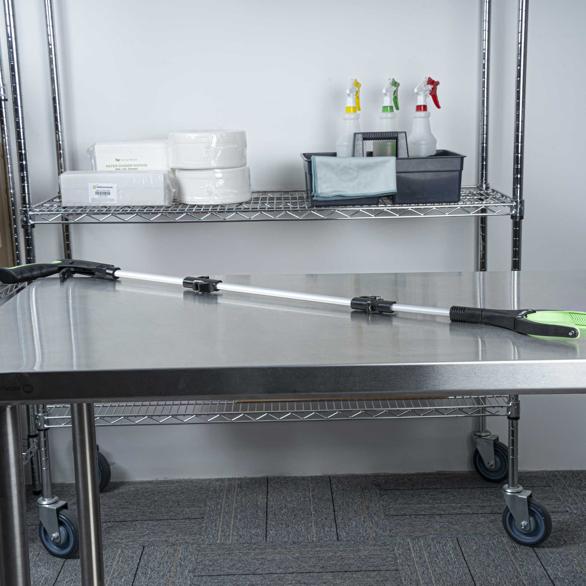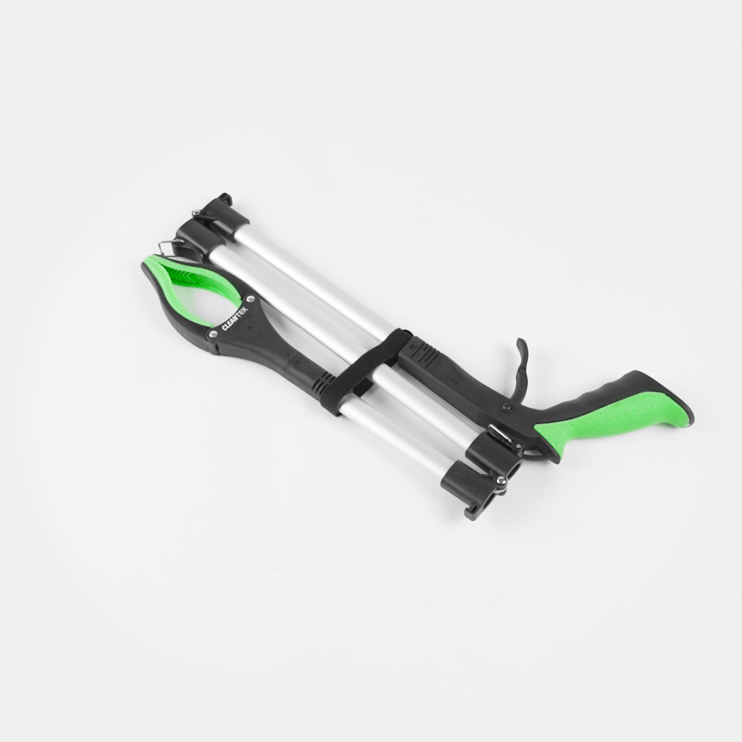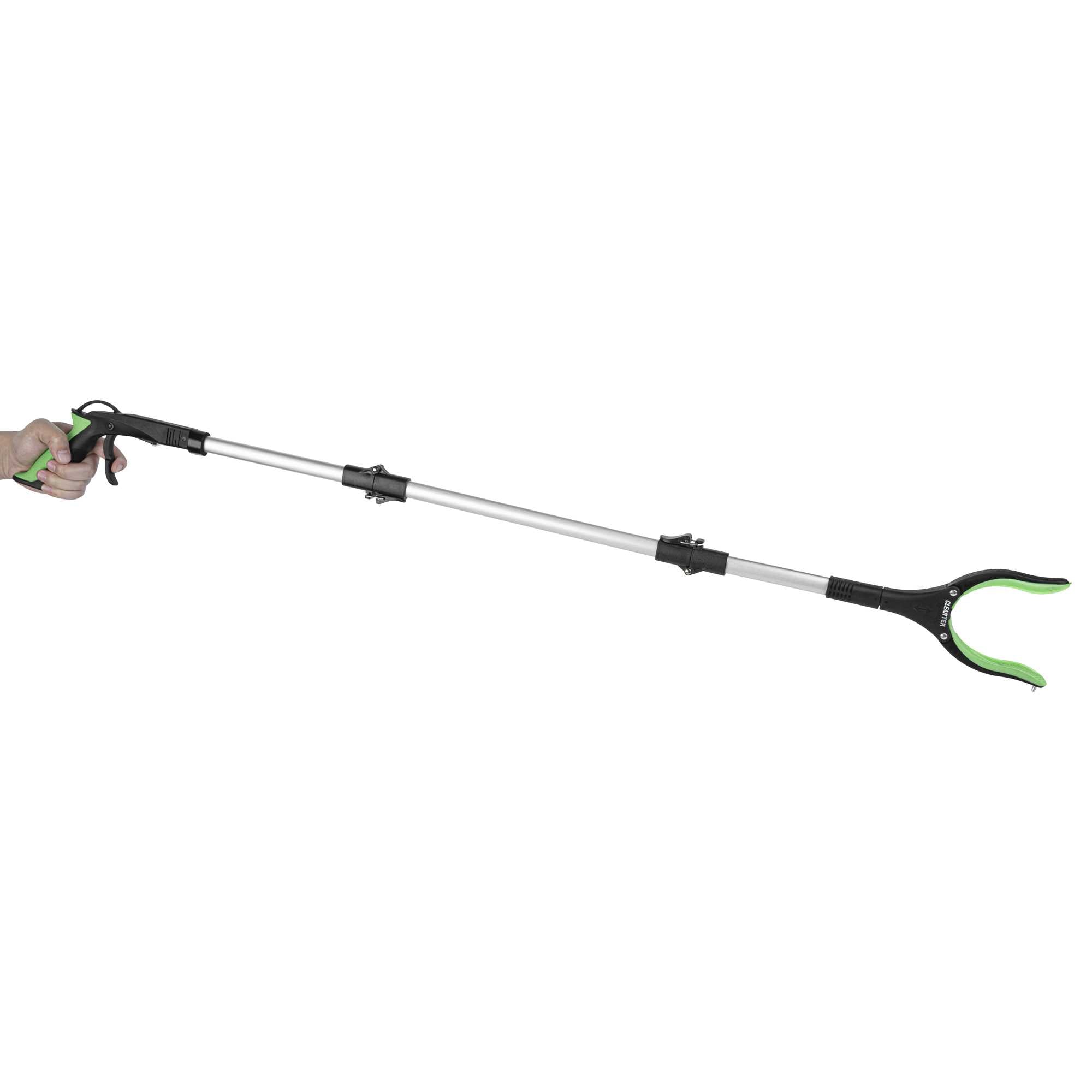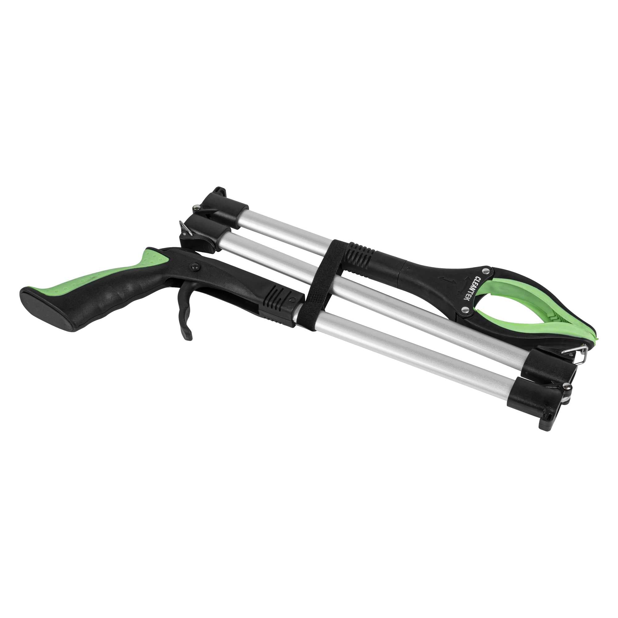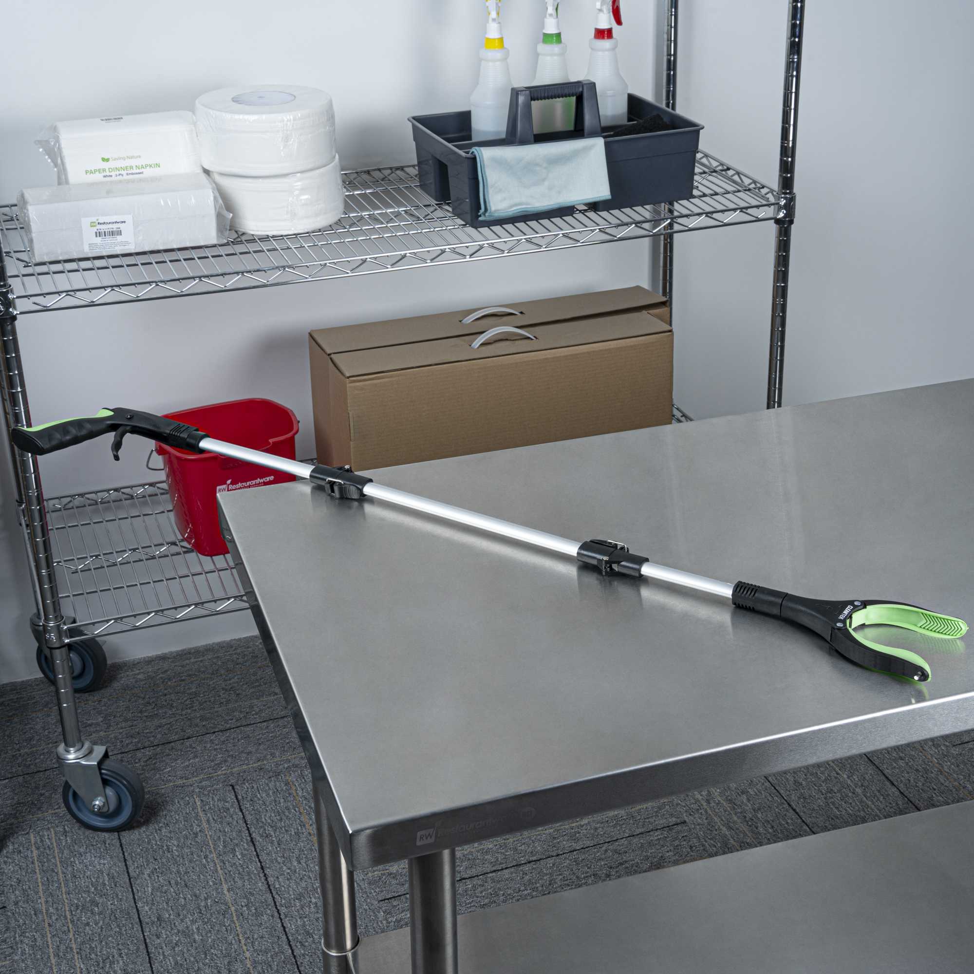 Maintain a clean and clutter-free space using our Clean Tek Professional 3-Fold Pick-Up Reaching Grabber Tool. This collapsible trash picker includes a 360° rotating head for precision when collecting trash in tight corners. Featuring a magnetic tip, this reacher grabber tool attracts metal waste like nails and cutlery. This garbage picker includes rubber-coated jaws to grasp slim or oddly shaped items without slipping. Designed with a 3-fold feature, this tool collapses to a highly compact form, ideal for janitorial kits or tight storage areas. Made from plastic and aluminum alloy, this folding trash grabber ensures long-lasting use. Great for use in restaurants, commercial kitchens, foodservice walk-ins, or back-of-house storage zones, this rotating head grabber is designed to support loads up to 4.4 pounds. Measuring 42.91 inches fully extended and 16.53 inches when folded, with a 3.74 inch clip opening, this collapsible reacher stores easily. Sold in a 1 count box.