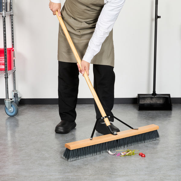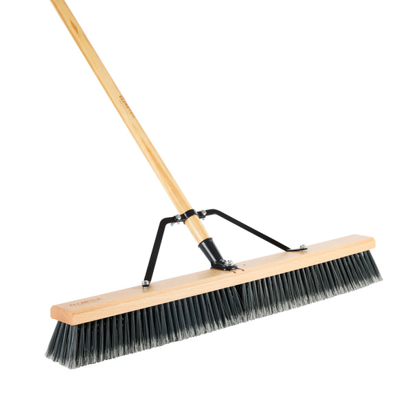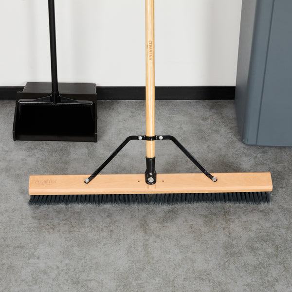 Enhance your cleaning efficiency with our Clean Tek Professional 30-inch Hardwood Contractor / Push Broom Head. Equipped with medium flagged bristles, this broom head provides a versatile cleaning performance, effectively capturing dust and debris from a variety of surfaces. The bristles of this heavy-duty push broom header are durable and ensure long-lasting performance. This push broom head can be paired with compatible handle (SKU: RWT1860B) and brace (SKU: RWT1861B) for a reliable cleaning experience. Featuring a non-absorbent wood block, this dust broom head ensures longevity with consistent use. Measuring 29.92 inches in length by 2.48 inches in width by 3.86 inches in height, this wide broom head is perfectly sized for tackling large spills and messes. Sold in a 1 count box. Handle and broom brace are available and sold separately.
