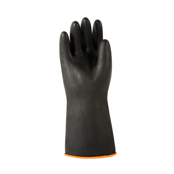 30 MIL BLACK LATEX CHEMICAL-RESISTANT GLOVES - UNLINED, HEAVY DUTY