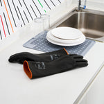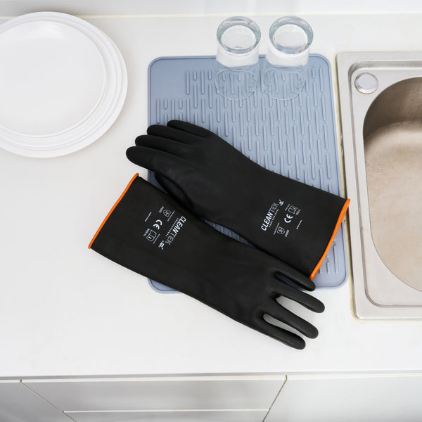 Enhance safety and efficiency in hazardous environments. Clean Tek Professional Extended Length Rubber Chemical Resistant Gloves provide unmatched protection with their chemical resistance, ensuring secure handling during cleaning operations. Designed from robust rubber, these gloves offer oil resistance, making them ideal for handling greasy foods in any foodservice setting. Their recyclable design supports eco-friendly practices, appealing to sustainability-focused businesses. With a length of 13.8 inches, these heavy-duty work gloves cover a significant portion of the arm, providing extra protection and comfort. Whether you're in a restaurant kitchen or industrial setting, their ergonomic design reduces hand fatigue, enhancing productivity. Experience reliable protection and sustainability in your daily operations with these chemical handling gloves. Each order includes 10 Clean Tek Professional Extended Length Rubber Chemical Resistant Gloves.