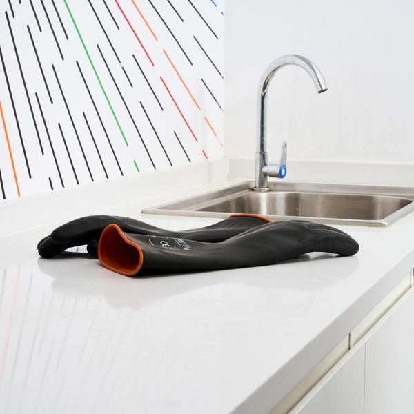 30 MIL BLACK LATEX CHEMICAL-RESISTANT GLOVES - UNLINED, HEAVY DUTY