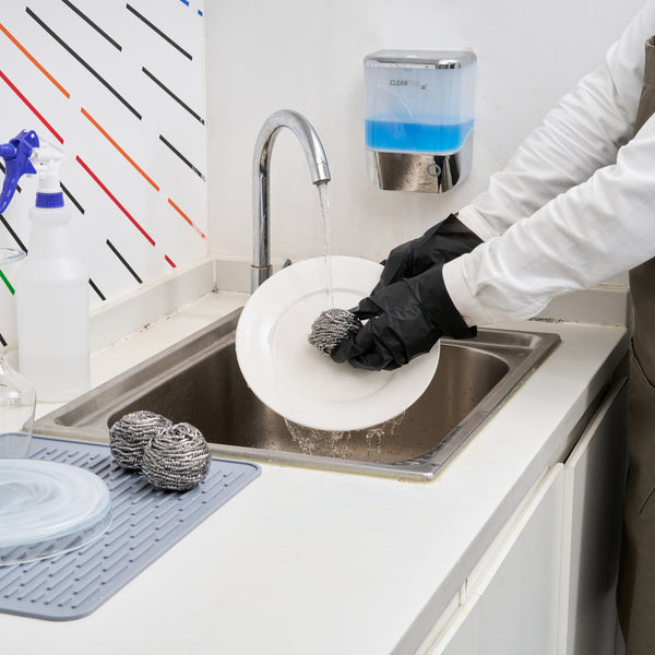 Eliminate stubborn baked-on grime with ease. The Clean Tek Professional Rust-Resistant Stainless Steel Scrubber is expertly crafted to tackle the toughest cleaning chores in commercial kitchens. Made from high-quality stainless steel, this scrubber ensures durability and resists rust, providing a long-lasting cleaning solution for stainless steel scrubbers. Its 30-gram weight offers a balanced heft that facilitates effective scrubbing without causing hand fatigue, making it an ideal steel wool pad for prolonged use. The scrubber's secure grip design enhances efficiency, allowing you to effortlessly remove residues from cookware and grills. With a compact size of 2.56 inches by 2.56 inches, it reaches into crevices for thorough cleaning, making it a versatile pot scrubber for various surfaces. Depend on its rust-resistant design to withstand hot water and cleaning chemicals, maintaining peak performance in your busy kitchen environment. Sold in a 100 count box.
