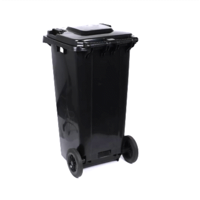 32 GAL RECTANGLE BLACK PLASTIC WHEELED TRASH CAN - WITH LID