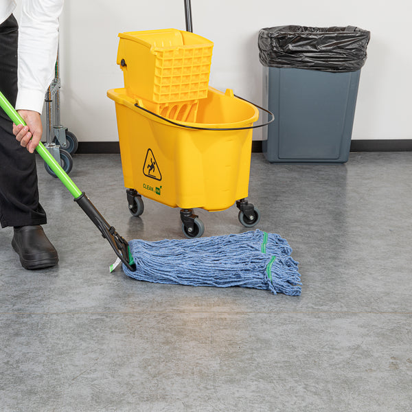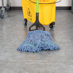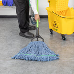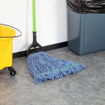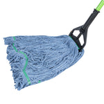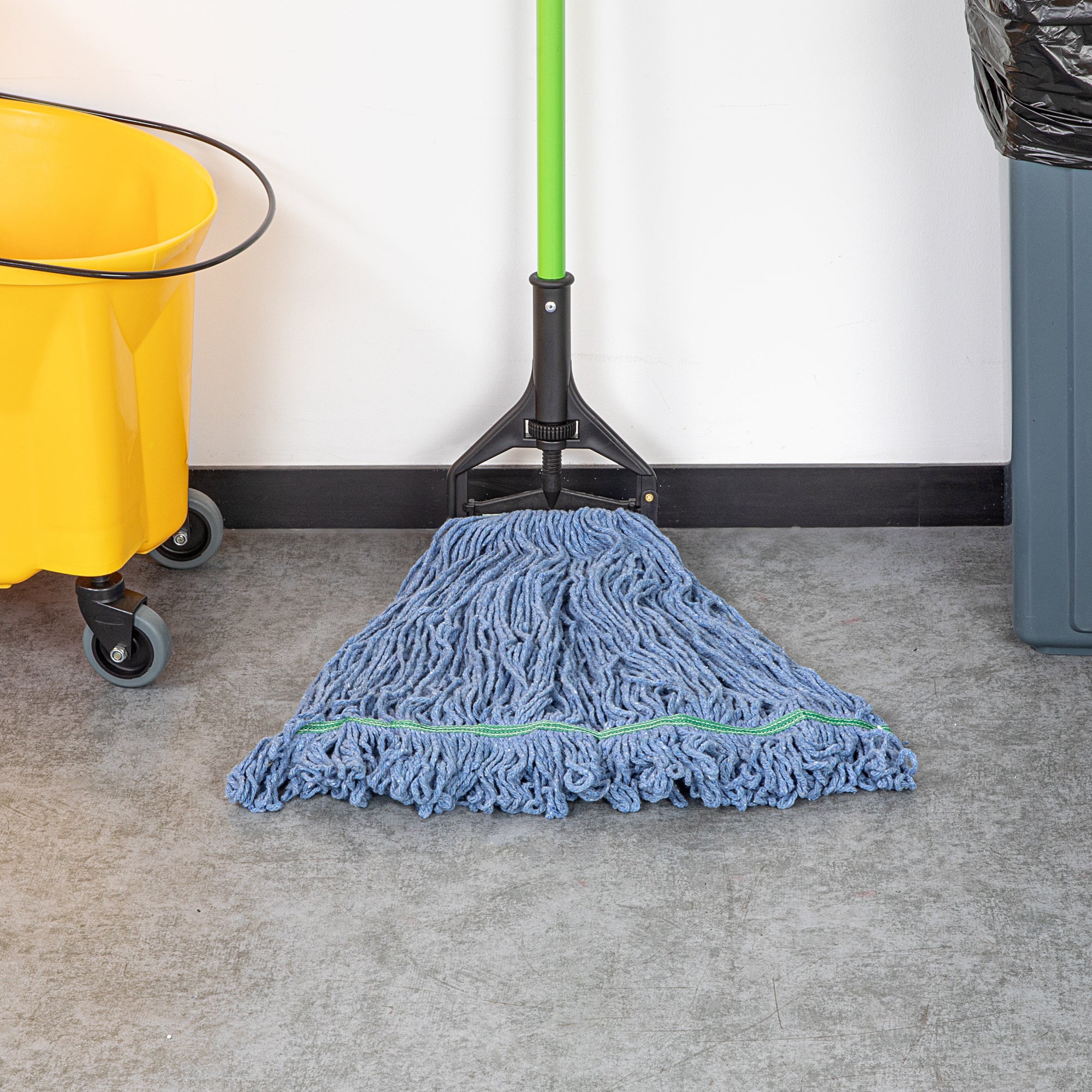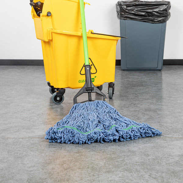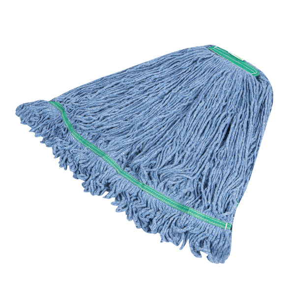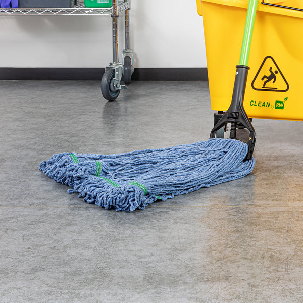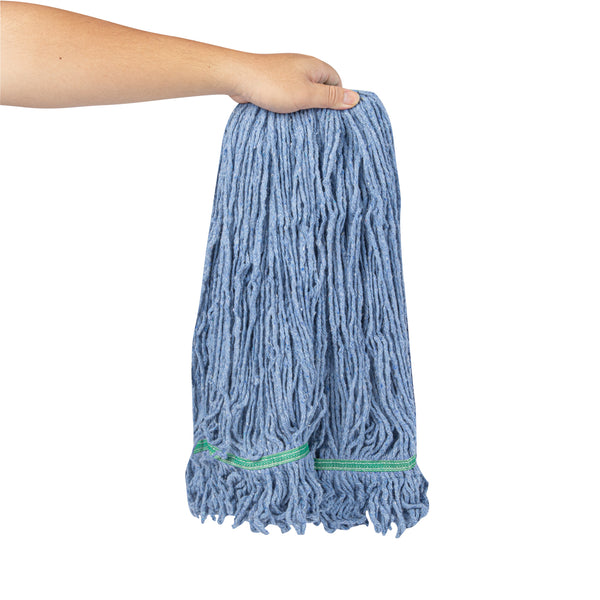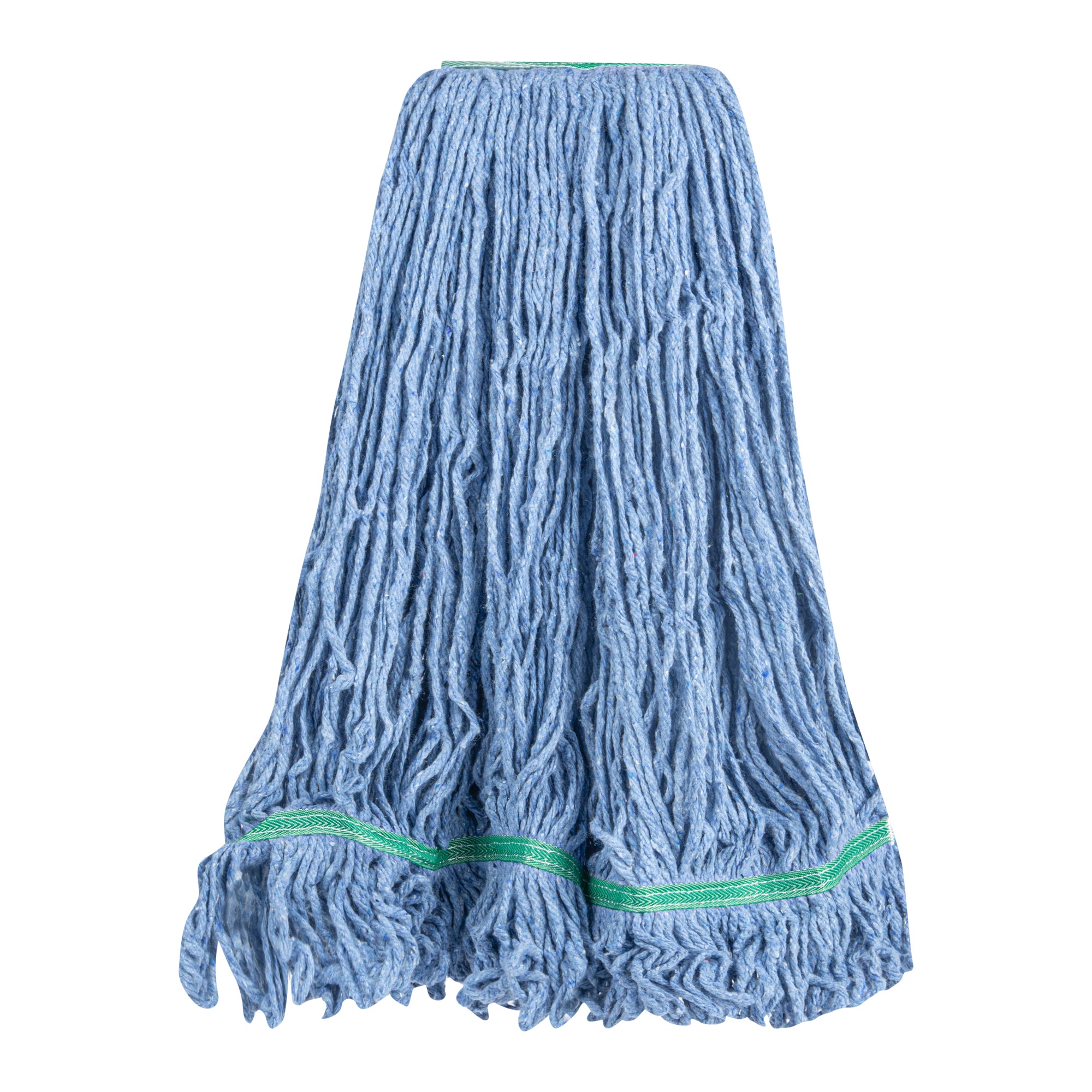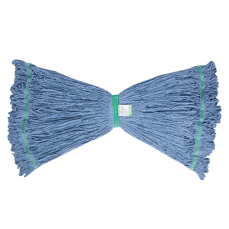 Tackle tough cleaning tasks with our Clean Tek Professional 32-ounce Blue Cotton Blend Heavy Duty Wet Mop Head. Featuring a 1.25-inch wide headband, this commercial mop head ensures a secure fit with its compatible handle (SKUs: RWT1788K, RWT1789G, and RWT1790G) for an efficient cleaning solution. The looped end design of this mop head increases durability and prevents fraying, providing a longer lifespan and more effective cleaning. Crafted from a premium blend of cotton and polyester, this washable mop head boasts superior dirt pick up and absorbency, making it ideal for efficient cleaning. For convenience, this mop head replacement is machine washable and can be easily cleaned for repeated use, ensuring long-lasting performance. This wet mop head ensures that your floors dry faster without streaking, making your cleaning process more efficient. Measuring 22.84 inches in length by 5.98 inches in width by 1.97 inches in height, this blue mop head has a capacity of 32 ounces. Sold in a 1 count box. Handles are available and sold separately.