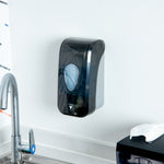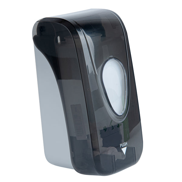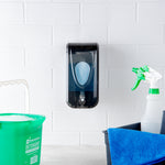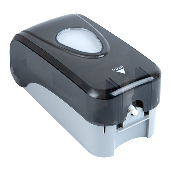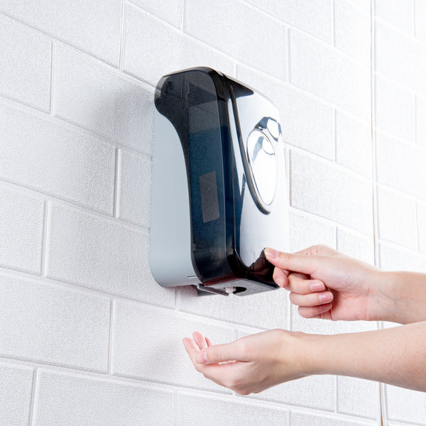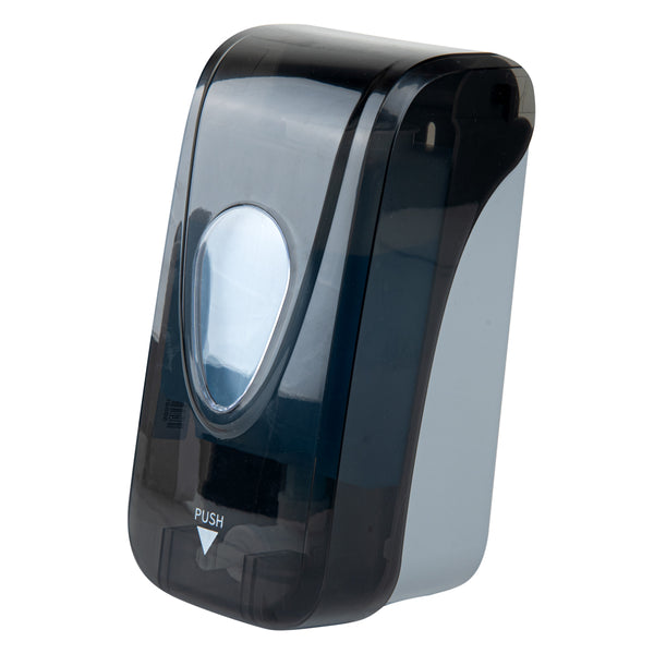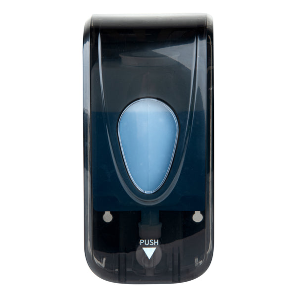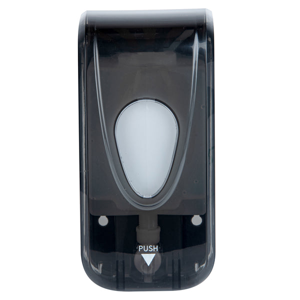 Provide customers and employees with a simple way to clean their hands with our Clean Tek Professional 33 oz Black Manual Soap Dispenser. Made from high-quality ABS plastic, this kitchen soap dispenser is sturdy and durable to withstand frequent use in your establishment's kitchen or restroom. Conveniently wall-mountable, this black soap dispenser is easily accessible and highly visible. This manual soap dispenser features a push button with an arrow, allowing customers to quickly and easily identify how to dispense soap. With a viewing window, this soap dispenser gives staff members an effortless way to identify when the dispenser needs to be refilled with gel or liquid soap. This hand-press soap tank allows guests to control the soap volume and stops dispensing soap when it's pushed to avoid dripping and product wastage. Containing up to 33 ounces of gel or liquid soap, this soap dispenser measures 9 inches long by 4.5 inches wide by 4.25 inches tall. Sold in a 1 count box.
