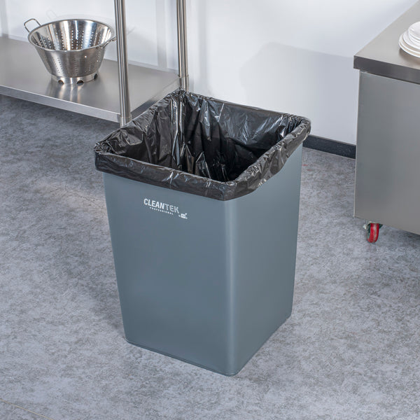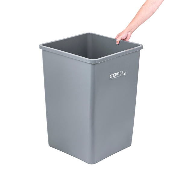 Improve waste management efficiency with our Clean Tek Professional 35-gallon Square Gray Plastic Trash Can. Made from premium HDPE plastic, this trash can withstands heavy-duty use at your foodservice establishment. With its square design, this plastic bin fits neatly into tight corners, maximizing space efficiency in any room. Boasting a 35-gallon capacity, this garbage can provides ample space for high-volume waste disposal. The classic gray color of this outdoor trash can blends in with most decor, seamlessly fitting into any environment. Measuring 19.49 inches in length by 19.49 inches in width by 27.64 inches in height, this garbage bin can hold up to 35 gallons and is perfect for various settings. Sold in a 1 count box.