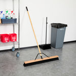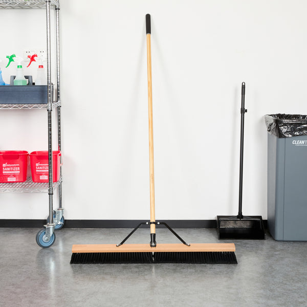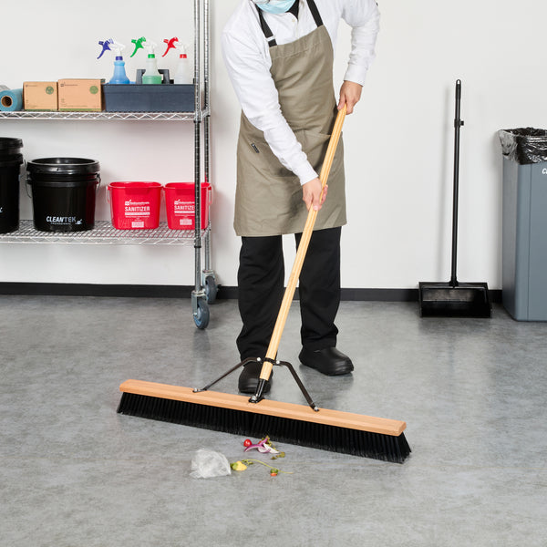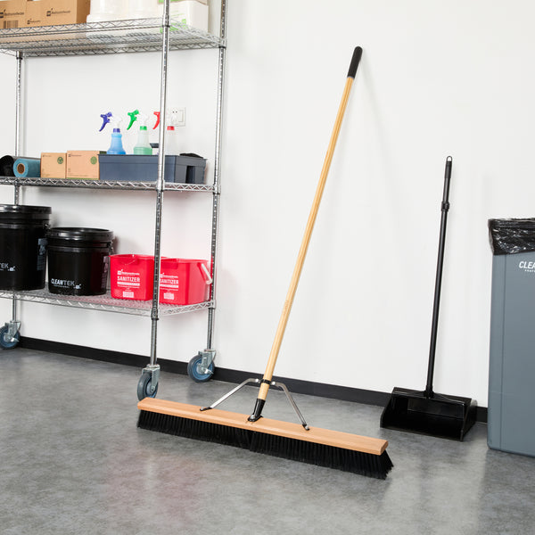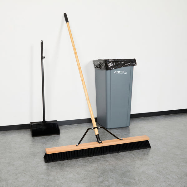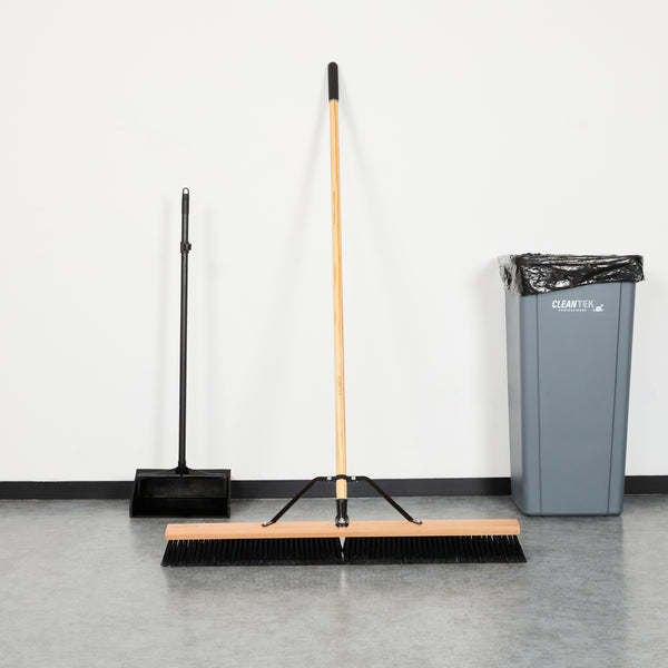 Effortlessly tackle cleaning tasks with our Clean Tek Professional 36-inch Contractor / Push Broom. Equipped with fine flagged plastic bristles, this push broom effectively captures and sweeps up dust and debris from a variety of surfaces, providing efficient cleaning. The 60-inch wood handle of this dust broom provides extended reach to easily sweep hard-to-reach areas while minimizing bending and strain. This contractor broom has an ergonomic design and ensures comfortable use for extended periods. The 36-inch long broom head of this broomstick is perfect for sweeping expansive areas quickly and efficiently. Featuring durable metal braces, this sweeper broom prevents unthreading, ensuring a secure and stable connection between the handle and bristles for consistent and reliable performance. With total dimensions measuring 64.17 inches in length by 37.4 inches in width by 3.15 inches in height, this heavy-duty broom is designed to meet the rigorous demands of professional cleaning. Sold in a 1 count box.
