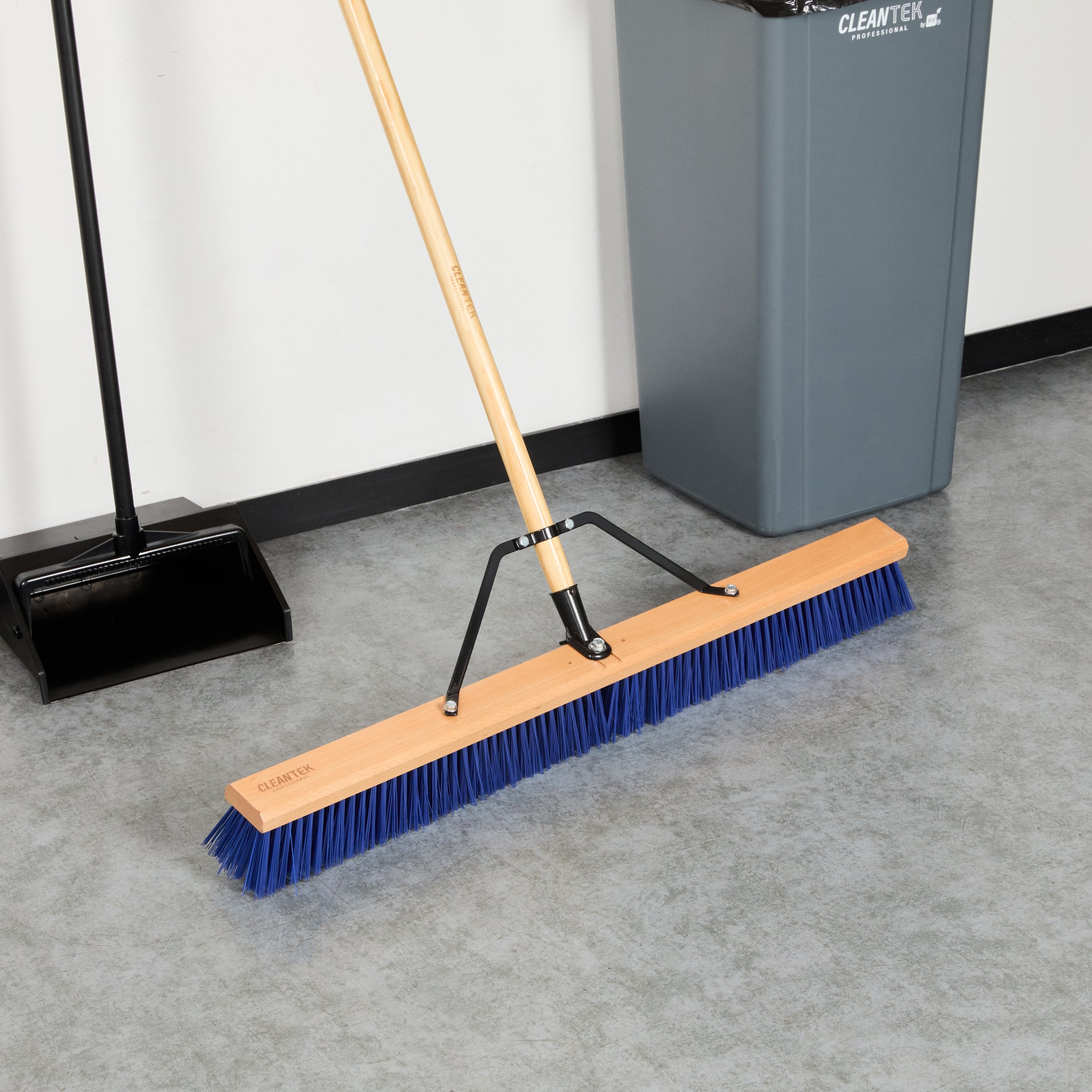 Make your establishment neat with our Clean Tek Professional 36-inch Hardwood Contractor / Push Broom Head. Equipped with heavy flagged bristles, this broom head efficiently dislodges and sweeps larger debris from rough or uneven surfaces. The plastic bristles of this push broom head are durable and provide long-lasting performance. This dust broom head can be paired with compatible handle (SKU: RWT1860B) and brace (SKU: RWT1861B), ensuring a comprehensive cleaning experience. Featuring a non-absorbent wood block, this heavy-duty push broom head is designed for durability and longevity with consistent use. Measuring 35.83 inches in length by 2.48 inches in width by 3.86 inches in height, this wide broom head is perfectly sized for tackling large cleaning jobs. Sold in a 1 count box. Handle and broom brace are available and sold separately.