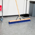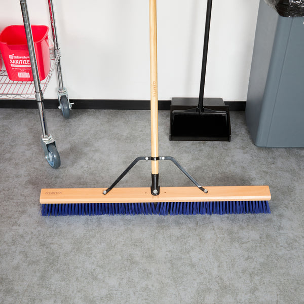 Make your establishment neat with our Clean Tek Professional 36-inch Hardwood Contractor / Push Broom Head. Equipped with heavy flagged bristles, this broom head efficiently dislodges and sweeps larger debris from rough or uneven surfaces. The plastic bristles of this push broom head are durable and provide long-lasting performance. This dust broom head can be paired with compatible handle (SKU: RWT1860B) and brace (SKU: RWT1861B), ensuring a comprehensive cleaning experience. Featuring a non-absorbent wood block, this heavy-duty push broom head is designed for durability and longevity with consistent use. Measuring 35.83 inches in length by 2.48 inches in width by 3.86 inches in height, this wide broom head is perfectly sized for tackling large cleaning jobs. Sold in a 1 count box. Handle and broom brace are available and sold separately.