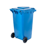 64 GAL RECTANGLE BLUE PLASTIC WHEELED TRASH CAN - WITH LID