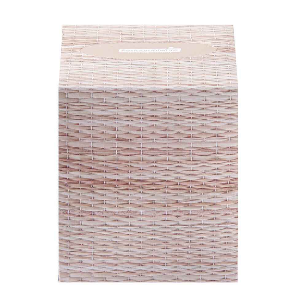 Make hospitality your game using our Clean Tek Professional 90 Sheet Facial Tissue Cubes. Manufactured from high-quality virgin wood pulp paper, these facial tissues are sturdy and durable. With a 2-ply construction, these facial tissue papers have high-absorbency properties and do not tear easily. The premium quality of these boxes of tissues allows them to have a soft texture without irritating the skin. To reduce wastage, these commercially compostable facial tissue cubes are designed to give out 1 tissue at a time. With a perforated top, these 2-ply facial tissue boxes ensure to protect the tissues before use. These tissue boxes are ideal for washrooms at restaurants or cafes. Measuring 4.25 inches in length by 4.25 inches in width by 5 inches in height, these cube boxes of facial tissues have 90 sheets each. Sold in a 36 count box.