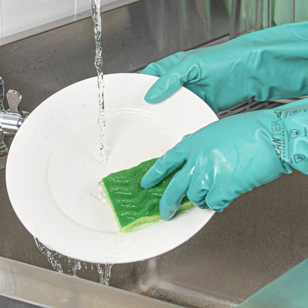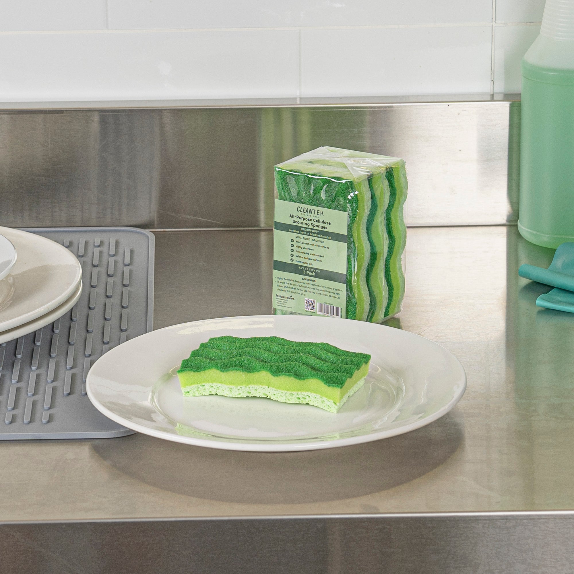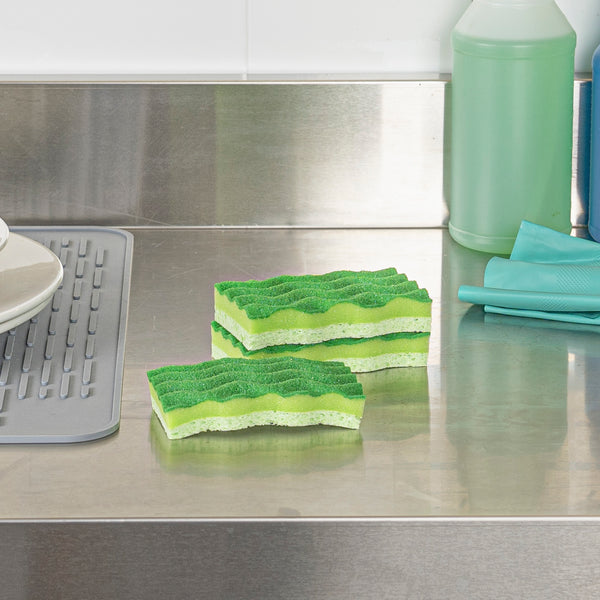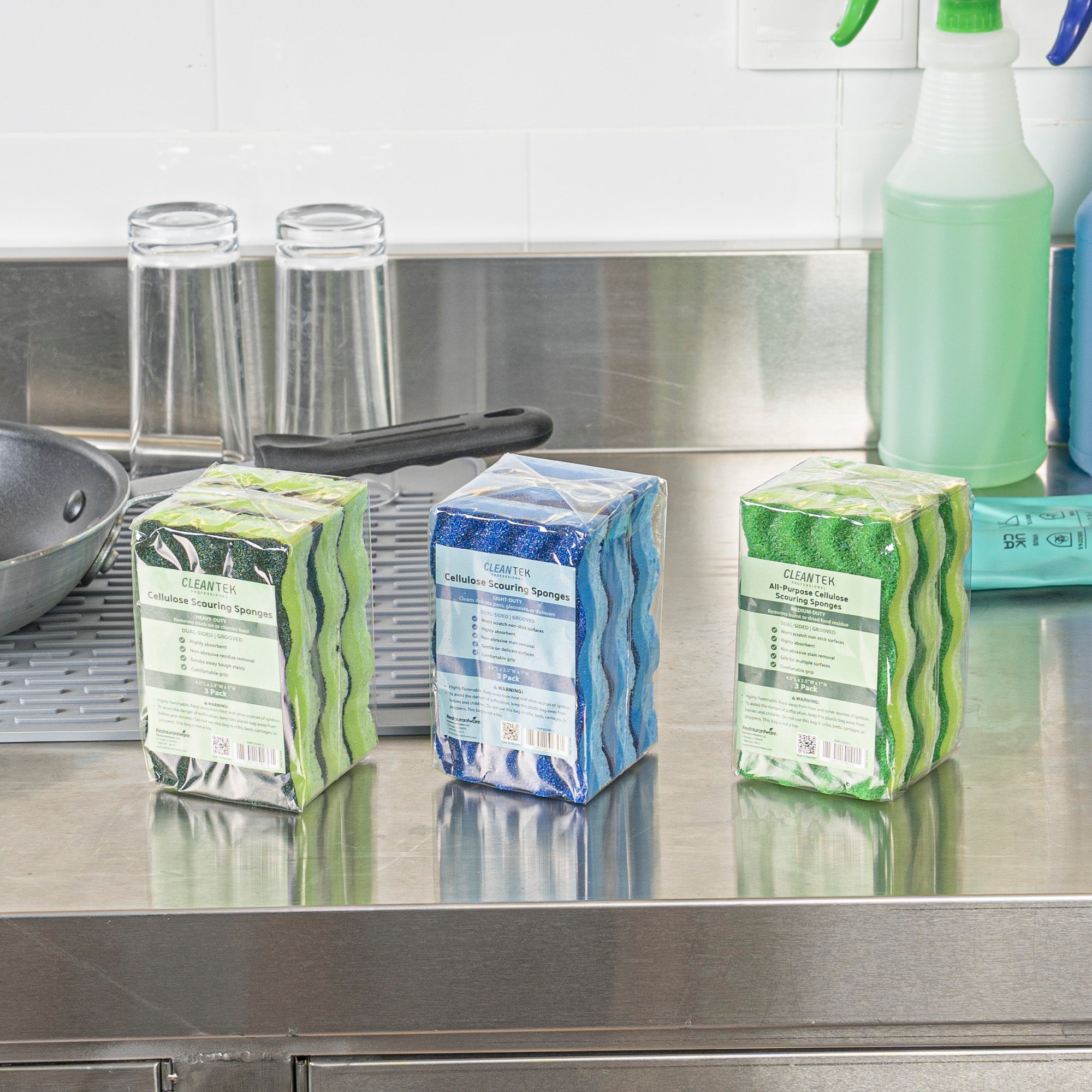 Efficiently tackle tough cleaning tasks with our Clean Tek Professional Non-Abrasive Cleaning Sponge. Engineered to protect cookware in busy kitchens, this cellulose sponge will not scratch non-stick surfaces, ensuring your cookware remains pristine. Designed with deep grooves, this kitchen sponge maintains constant contact with scrubbing surfaces, efficiently removing all debris from pots, pans, and countertops. Made of cellulose, this sponge supports foodservice operations, perfect for establishments committed to sustainability. Measuring 4.53 inches in length, 2.56 inches in width, and 0.91 inches in height, its compact design allows for easy handling and storage in any kitchen setting. Enhance your cleaning routine while minimizing ecological impact with this versatile cleaning sponge. Each order includes 60 Clean Tek Professional Non-Abrasive Cleaning Sponges.