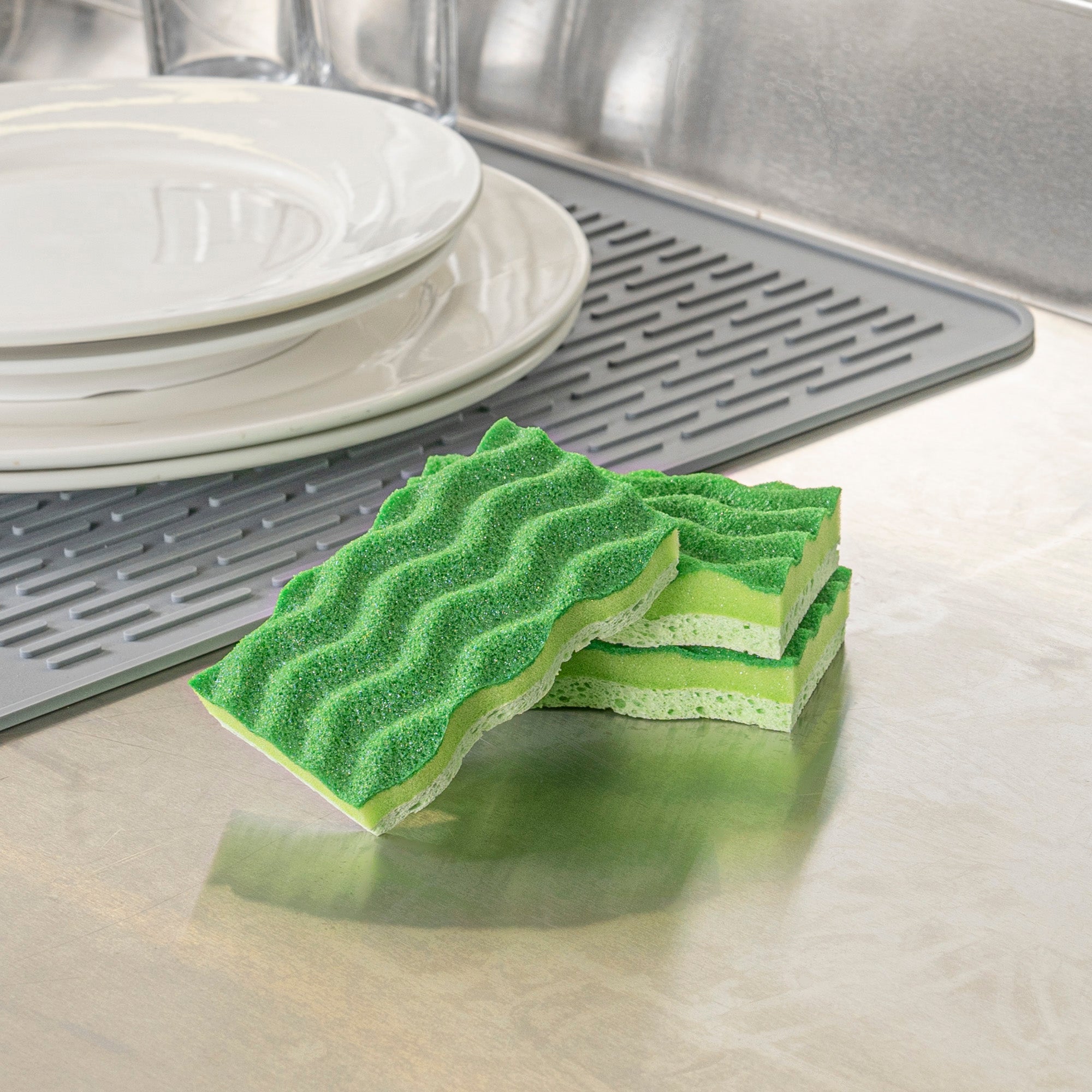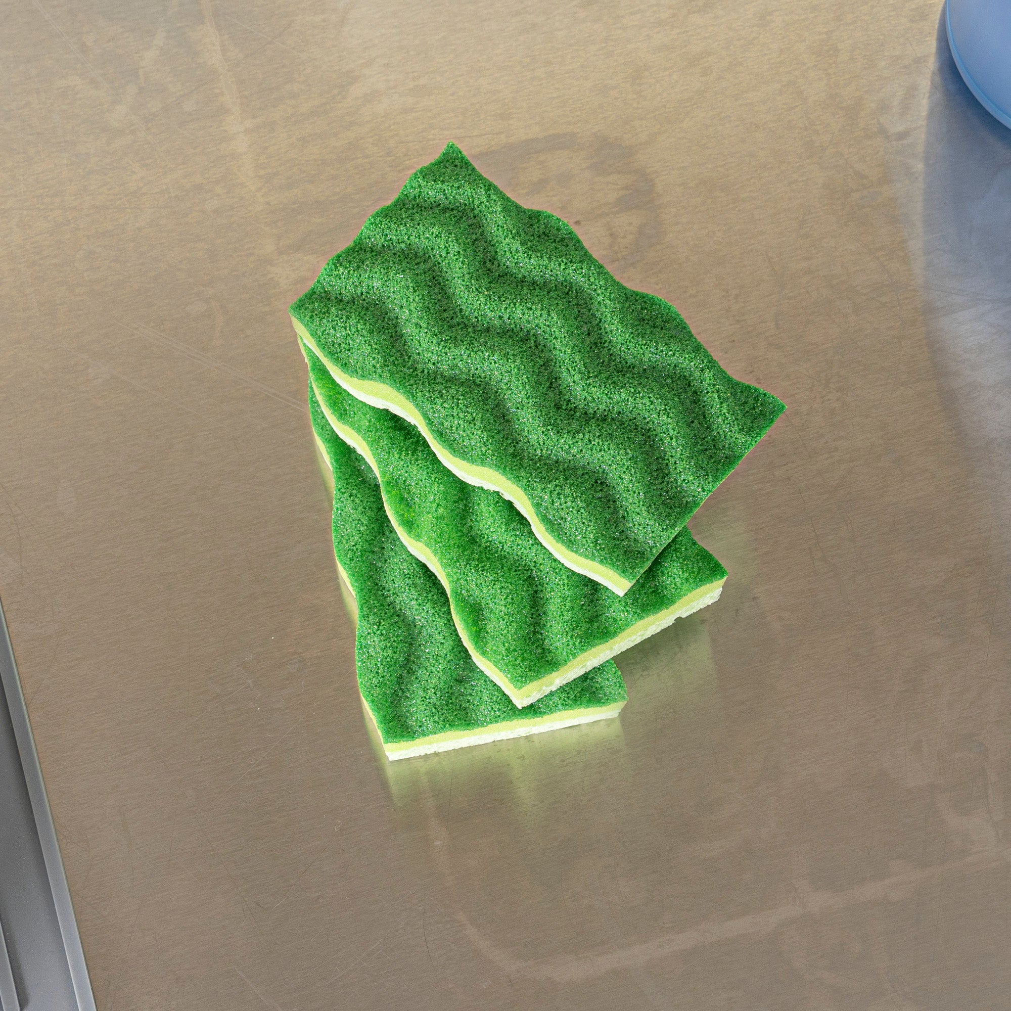 ALL-PURPOSE LIGHT AND DARK GREEN CELLULOSE SCOURING SPONGE - GROOVED