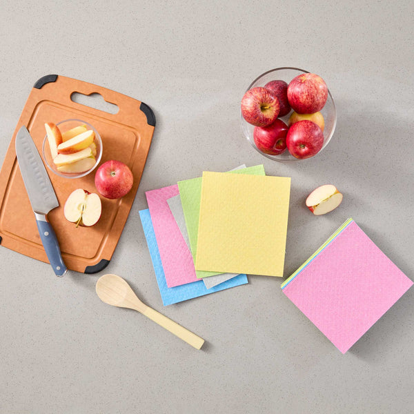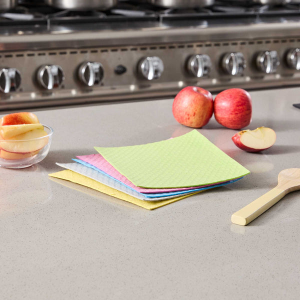 Boost cleaning efficiency with our Clean Tek Professional Assorted Reusable Swedish Dishcloths. Made from a cellulose-cotton blend, these dishcloths feature a soft, absorbent texture that easily tackles spills and splashes. Designed for repeat use, each reusable dishcloth is dishwasher-friendly and biodegradable, supporting sustainable practices in high-volume kitchens. Featuring assorted colors such as gray, pink, blue, yellow, and green, these cloths promote hygienic, task-specific cleaning. Ideal for use on wood, marble, tile, and stainless steel, they transition from soft to gritty for versatile performance. Measuring 6.77 inches in length by 7.68 inches in width, these cleaning cloths deliver reliable results. Sold in a 10 count box.