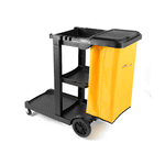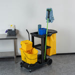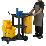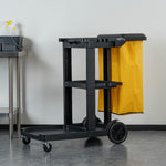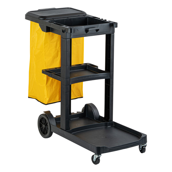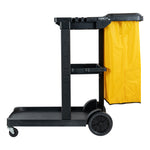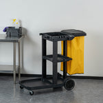 BLACK 3-SHELF JANITOR CART - 18 GAL BAG, LID