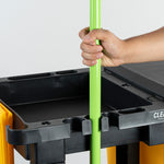 - Built-in broom and mop holder keeps your cleaning tools securely in place and easily accessible