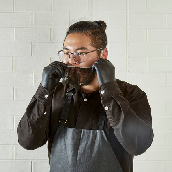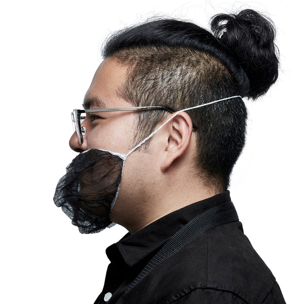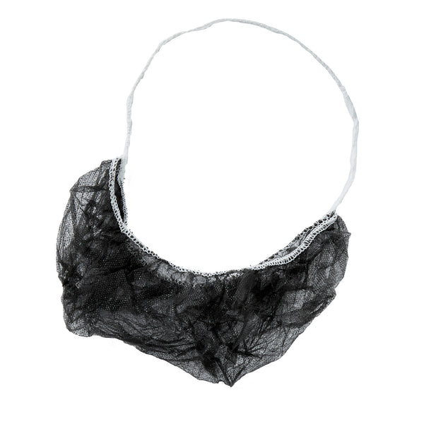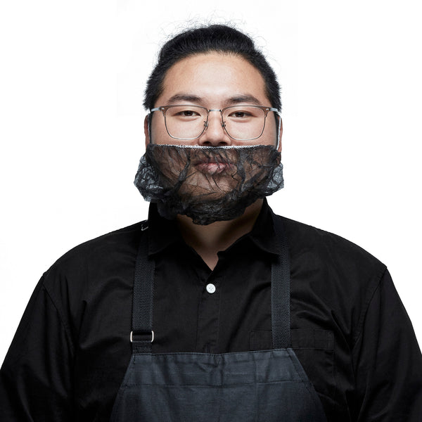 Keep food withouthair using our Clean Tek Professional Black Disposable Beard Covers. These facial hair nets cover beards to keep hair and other substances out of food and help you maintain a clean and safe work environment. With their breathable construction, these beard cover masks have a soft texture and lightweight design to provide employees with comfort that lasts all day. Featuring a built-in elastic band, these premium beard nets provide a snug and secure fit over ears and chins to expertly contain beards of all sizes. Made from a high-quality disposable material, these kitchen beard nets streamline cleanup at any foodservice establishment. With a black finish, these dark beard nets seamlessly match the employee uniforms at your catering service, bakery, restaurant, or food manufacturing company. These foodservice beard nets stretch up to 19 inches in length. Shipped in a 100 count box.