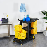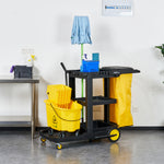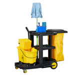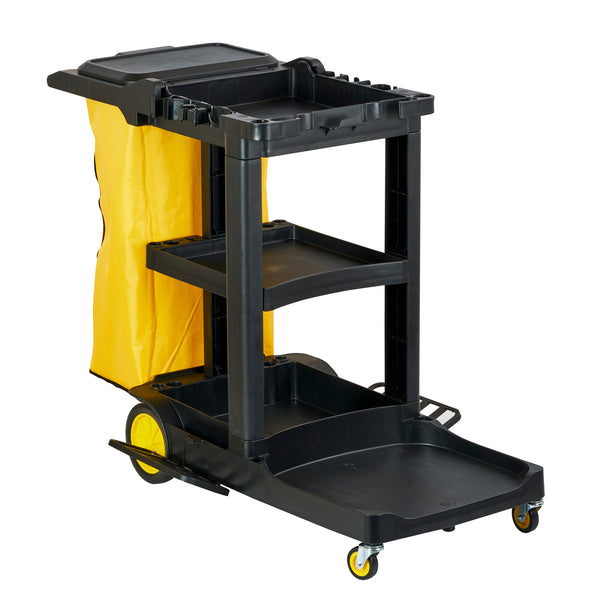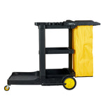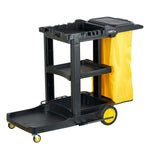 BLACK HEAVY DUTY 3-SHELF JANITOR CART - 21 GAL BAG, LID