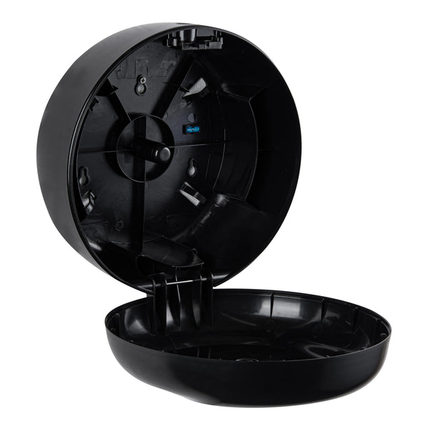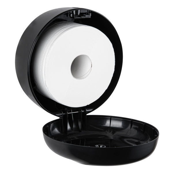 These toilet paper dispensers are available in either black or white colors to complement any washroom setting. Perfect for high-traffic restrooms or toilets.