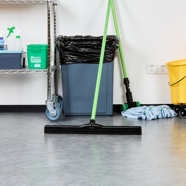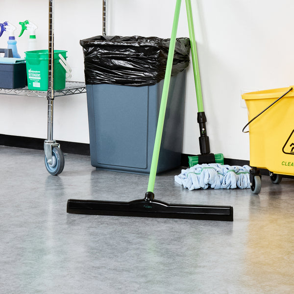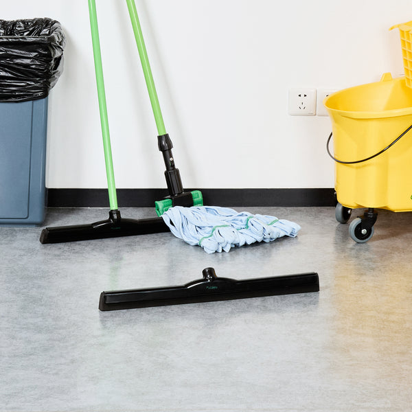Effortlessly keep your floors clean with our Clean Tek Professional Black Plastic Floor Squeegee. Pair this floor squeegee with our compatible handle (SKU: RWT1762G) for an efficient cleaning experience. Made from premium foam blade, this large floor squeegee conforms to various surfaces, effectively removing water, dirt, and debris from uneven, grouted, and smooth floors. This commercial floor squeegee is the ideal tool for maintaining cleanliness in busy kitchen settings, reducing grease accumulation, and minimizing the risk of slips and accidents. Each straight-blade squeegee distributes pressure evenly across surfaces, providing a consistent and no-streak clean with each stroke. Crafted with a lightweight PP frame, this shower squeegee ensures durability and long-lasting performance even in wet conditions. Measuring 24.02 inches in length by 3.54 inches in width by 1.77 inches in height, this bathroom squeegee is perfect for covering large areas efficiently. Sold in a 1 count box. Handle is available and sold separately.