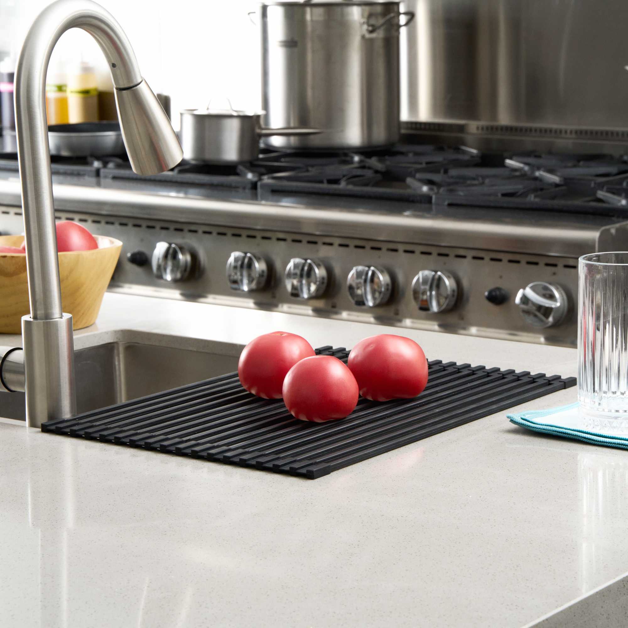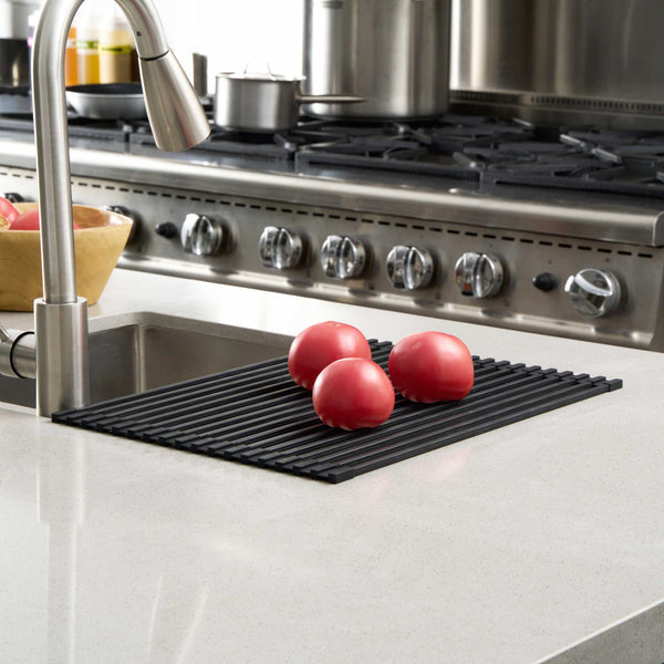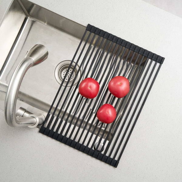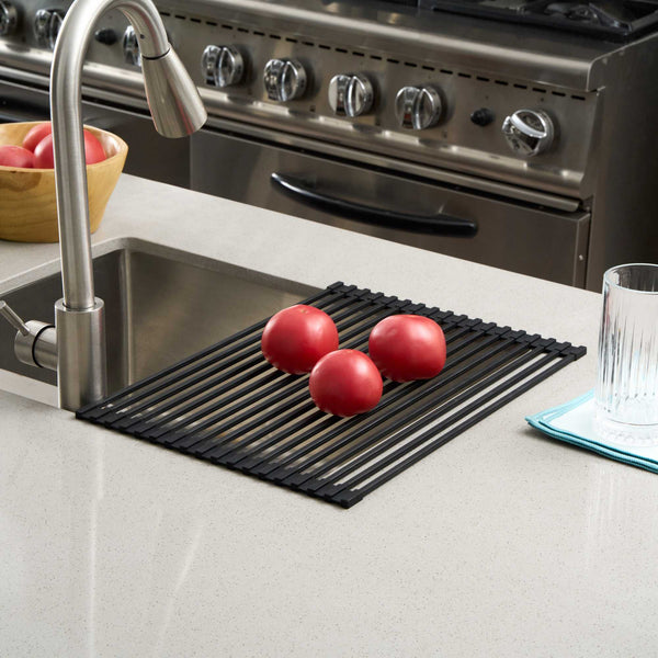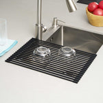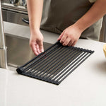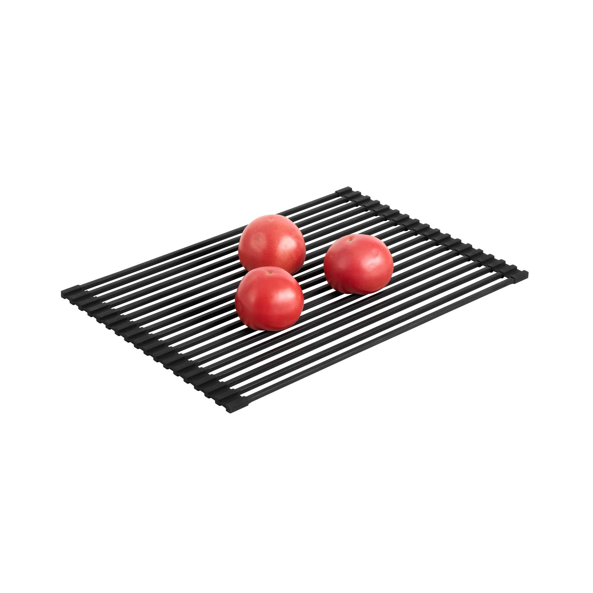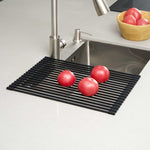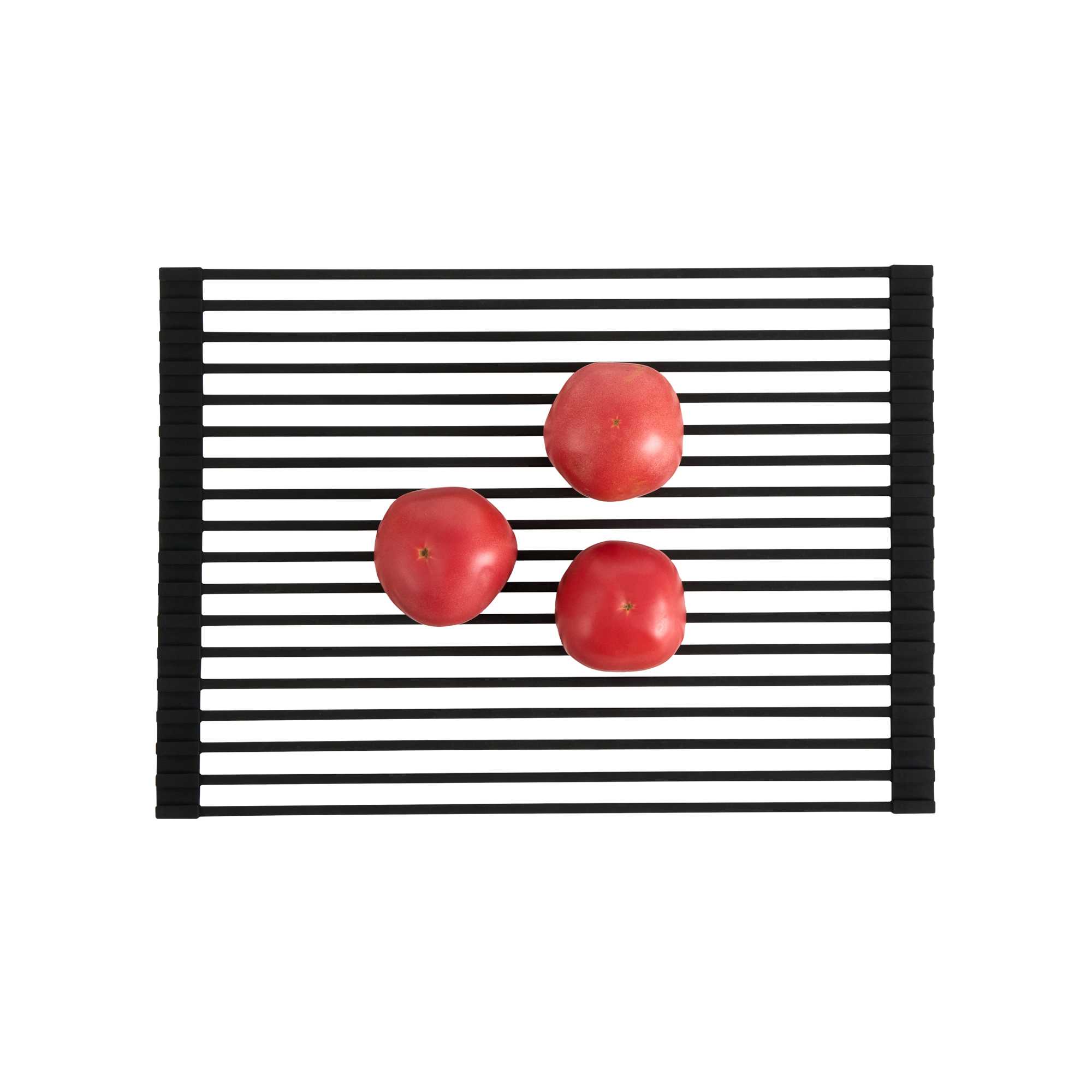 PROFESSIONAL BLACK STEEL OVER-SINK ROLL-UP DRYING RACK - NON-SLIP