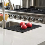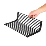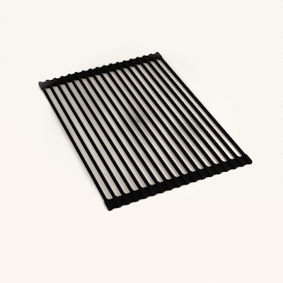 Maximize counter space with this versatile dish rack solution. The Clean Tek Professional Black Steel Over-Sink Roll-Up Drying Rack makes efficient use of your kitchen space with its roll-up design, ideal for tight environments. Made from durable steel, this over the sink drying rack is heat resistant up to 392F, allowing it to handle hot cookware directly from the stove, ensuring it meets the demands of busy kitchens. Equipped with non-slip food safe silicone, this roll up dish drainer provides a secure, stable surface for drying dishes, while its dishwasher-safe construction simplifies cleaning and sanitation procedures. Designed to be both hot and cold food friendly, this dish rack is perfect for a range of kitchen tasks, from cooling baked goods to defrosting meats, making it an indispensable part of your kitchen setup. Measuring 16.93 x 12.99 inches, this reliable and adaptable dish rack enhances your kitchen’s functionality. Each order includes 12 racks.