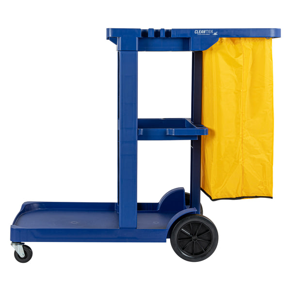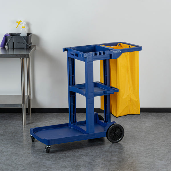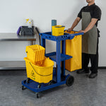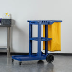 BLUE 3-SHELF JANITOR CART - 18 GAL BAG