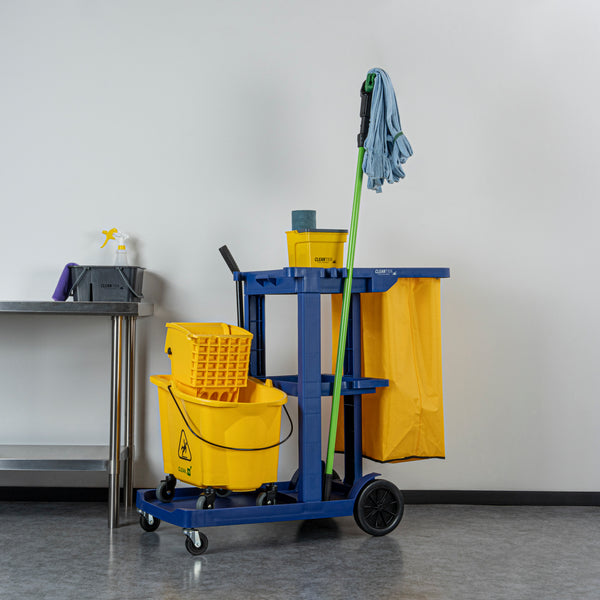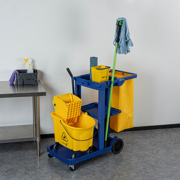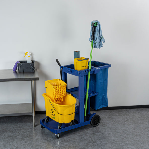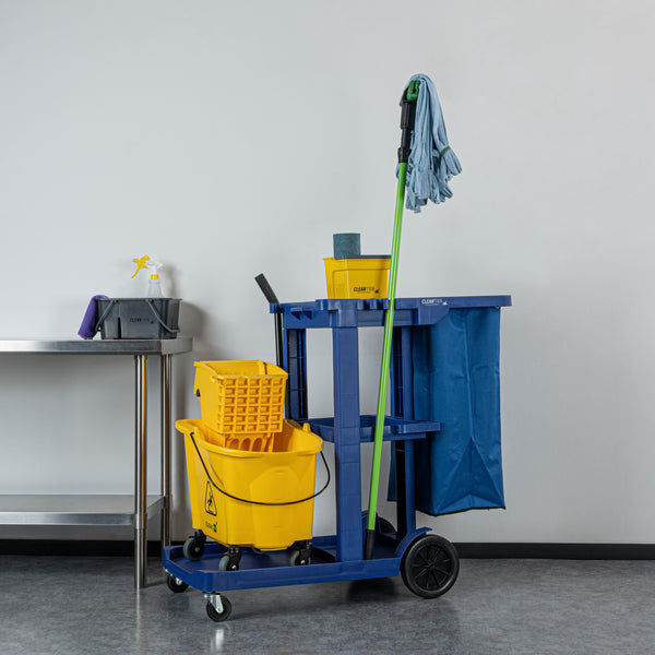 This durable janitor cart is sold in a wide range of colors, allowing for easy identification and organization in busy environments. Choose a color that complements your workspace or distinguishes specific carts for different areas..